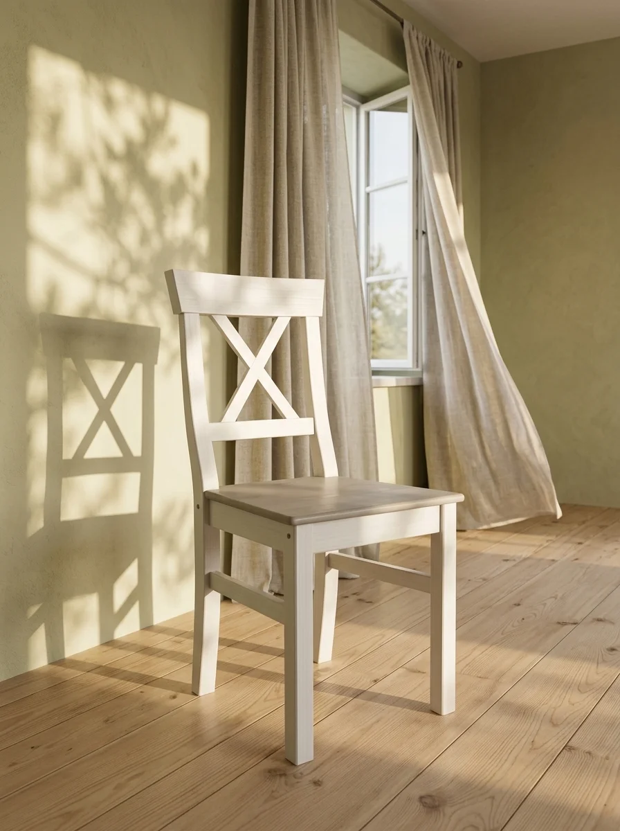 Стул сделан из натурального массива, а потому отличается прочностью и долговечностью. Высота сиденья 45 см. Покрытие стула - укрывистый белый лак в комбинации с серым. На поверхности просвечивает природный рисунок, благодаря чему каждое изделие выглядит по-настоящему уникальным.