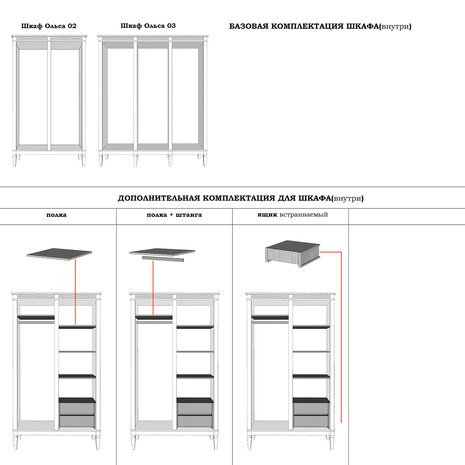 В базовое наполнение шкафа полки и штанги НЕ ВХОДЯТ;