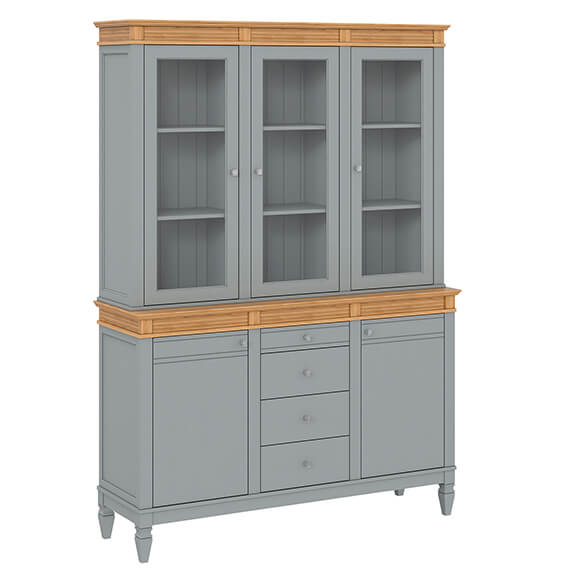 Буфет визуально разделен на 3 секции которые укомплектованы шестью полками сверху