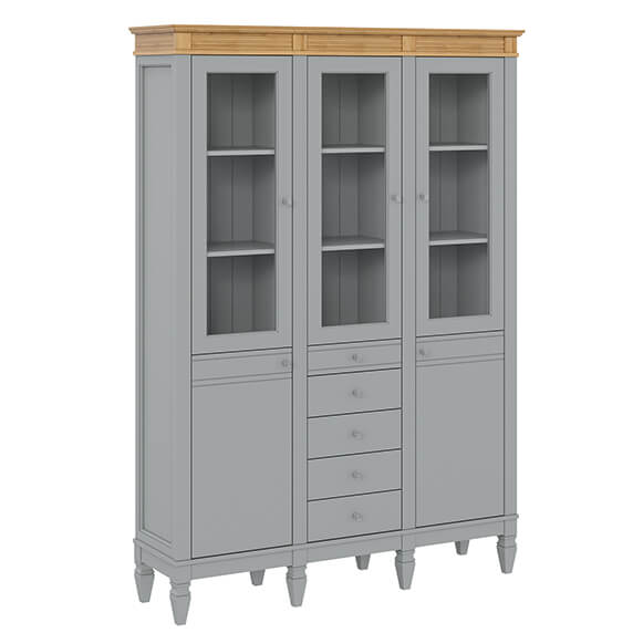 Визуально разделен на три вертикальных секции. Сделан из натурального массива, поэтому может выдерживать значительные нагрузки.