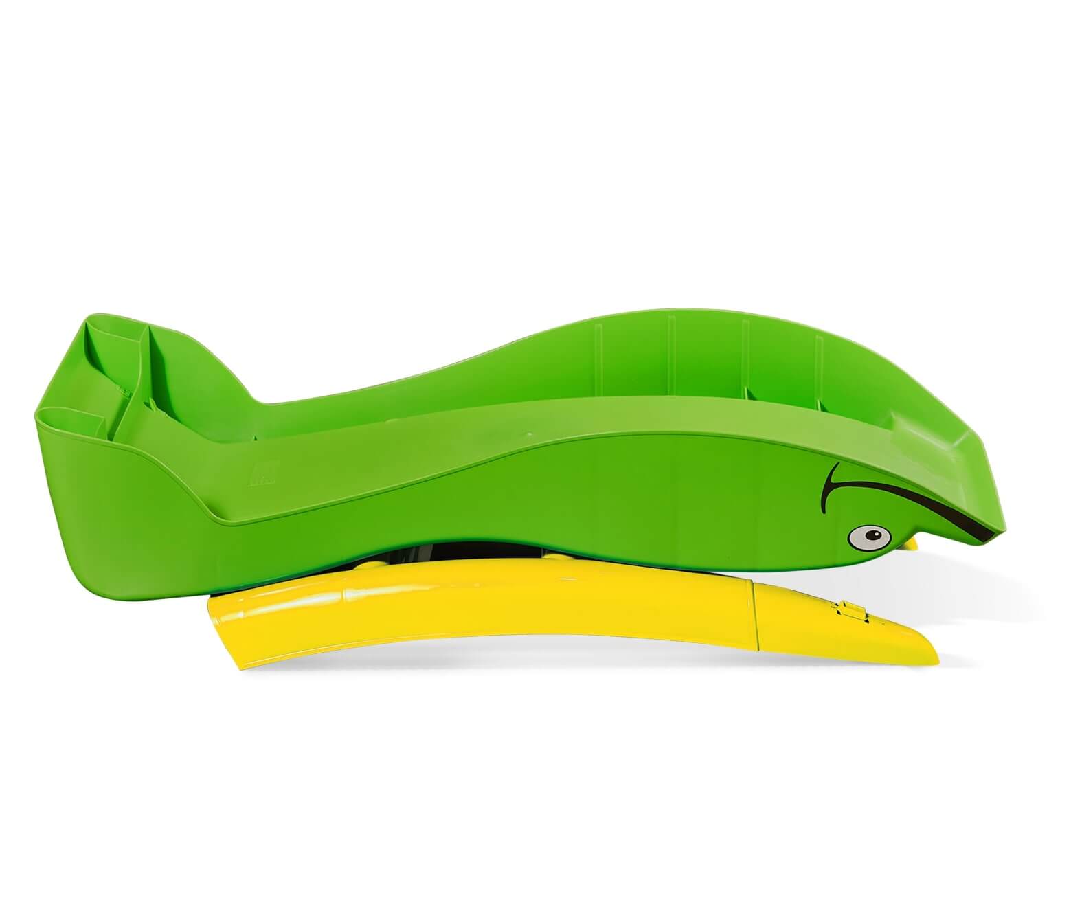 ЗАНИМАЕТ МАЛО МЕСТА. Горка быстро собирается и разбирается, занимая в два раза меньше места в сложенном виде.