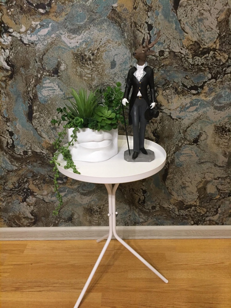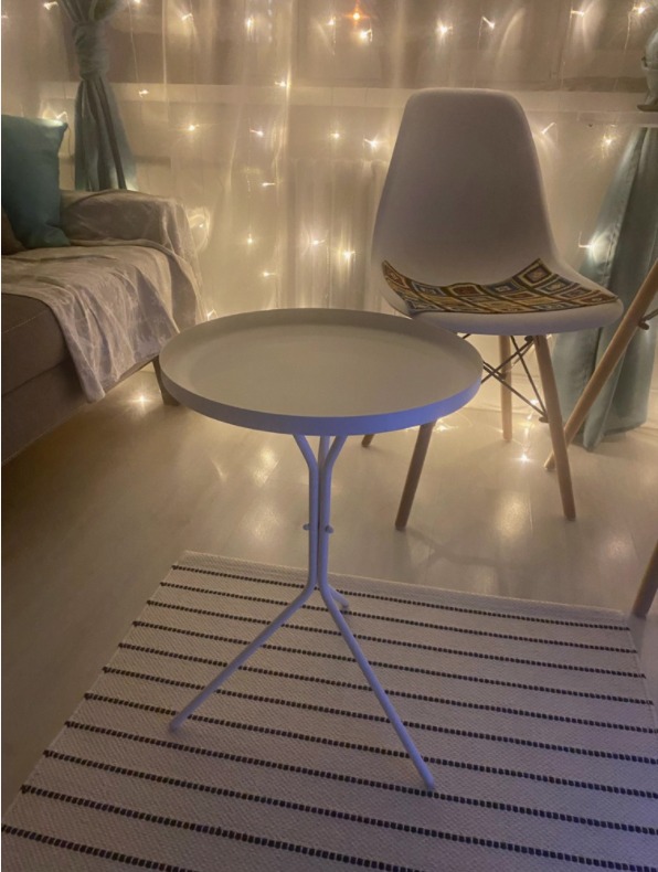 металлический каркас и столешница окрашены порошковой краской, устойчивой к механическому воздействию. Выполнен из трубы 12 мм и металлического листа толщиной 1 мм. Диаметр столешницы 350 мм.
