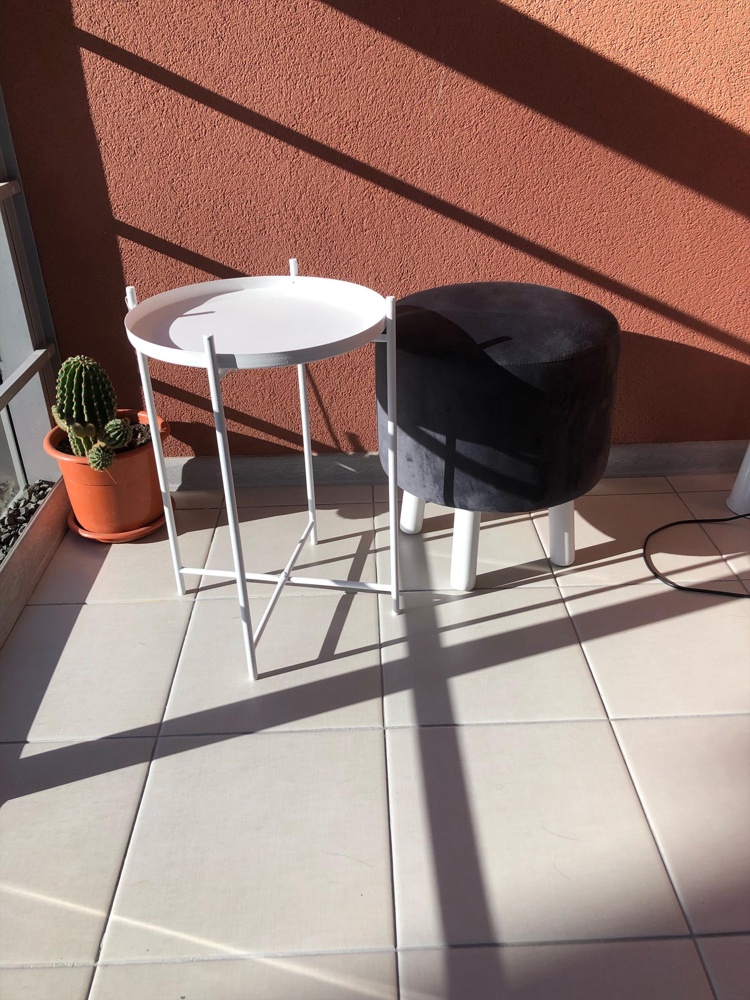 металлический каркас и столешница окрашены порошковой краской, устойчивой к механическому воздействию. Выполнен из трубы 12 мм и металлического листа. Диаметр столешницы 350 мм.
