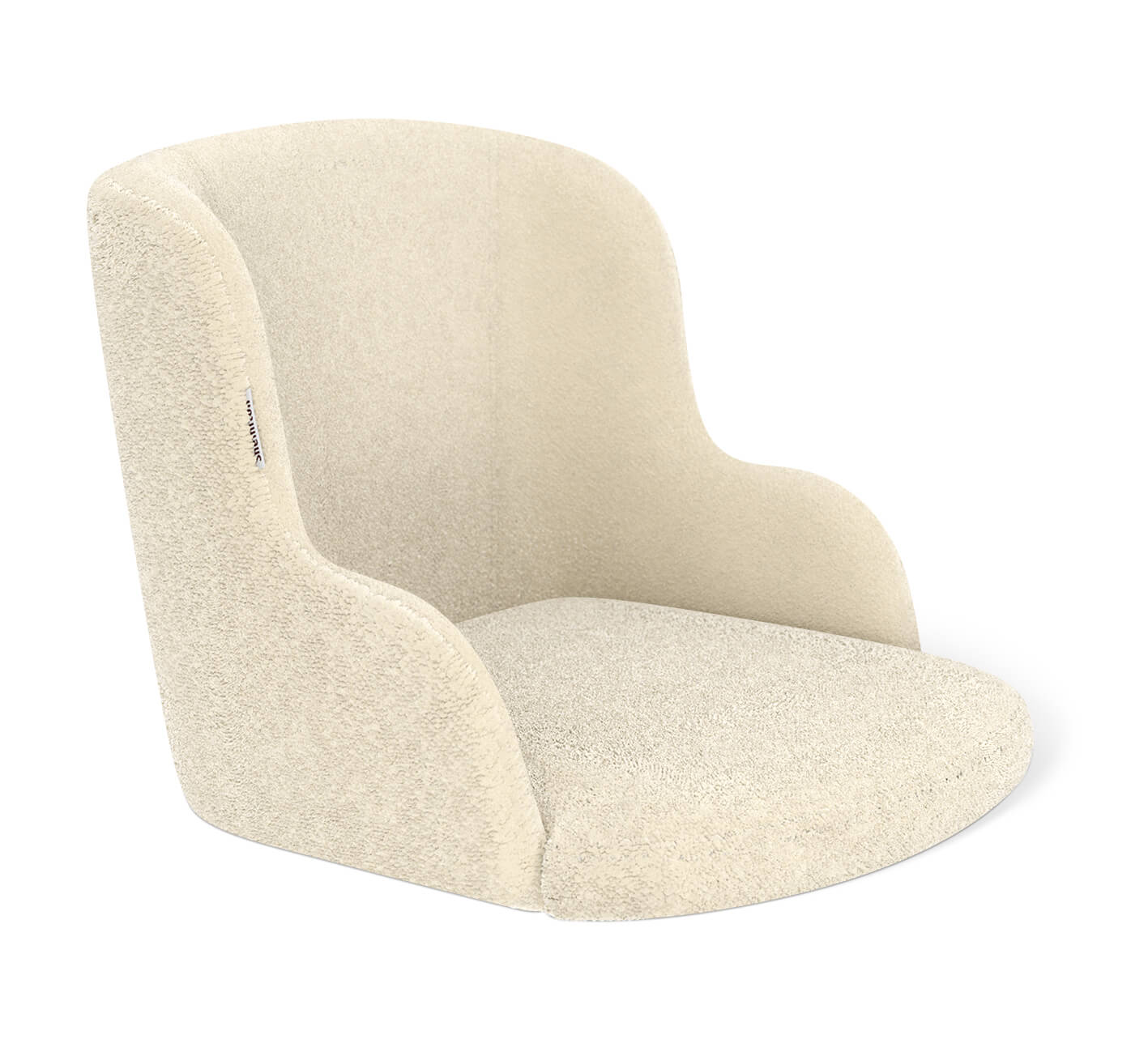 ОБИВКА выполнена из букле, в качестве мягкого наполнителя используется поролон.