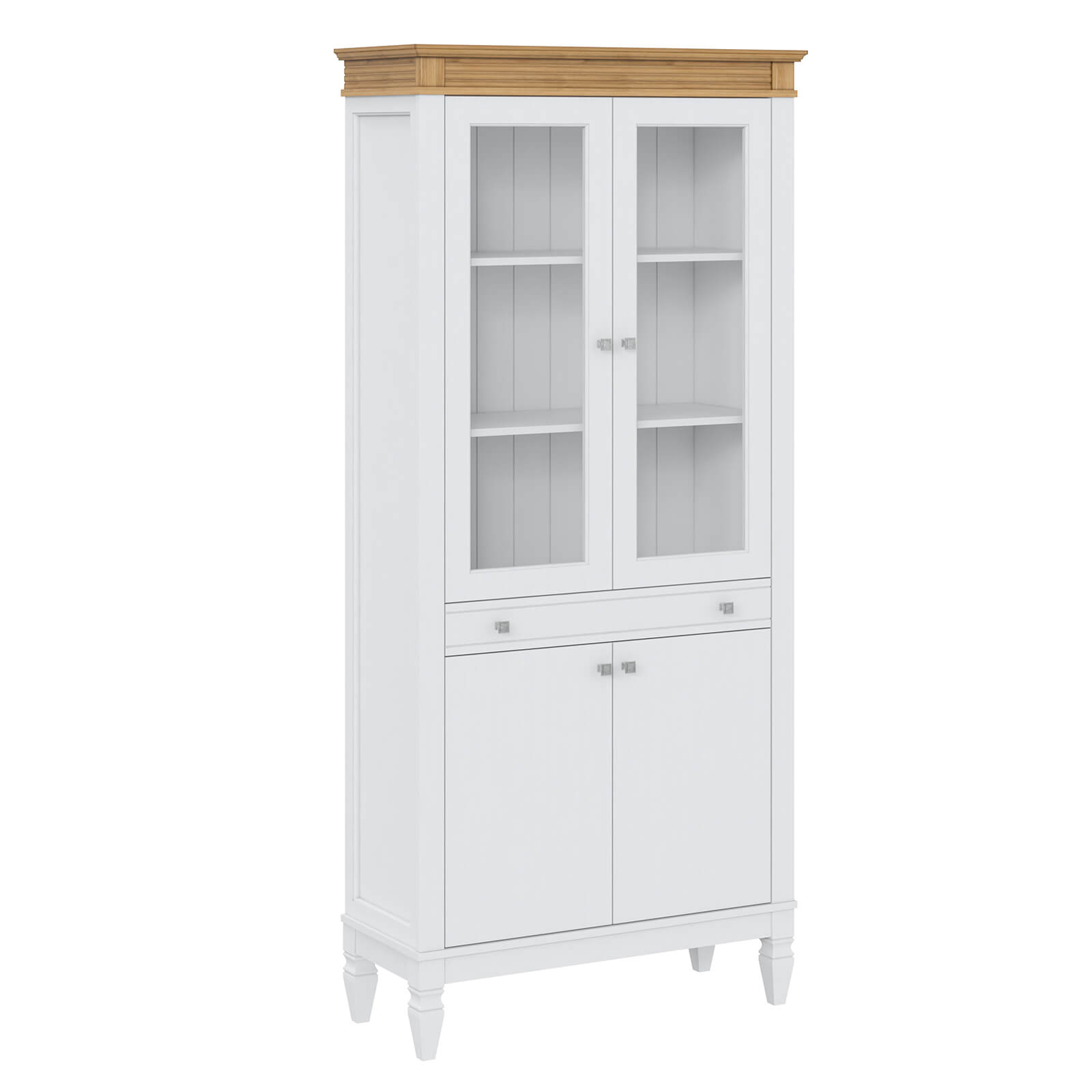 двумя стеклянными дверями и одним выдвижным ящиком.