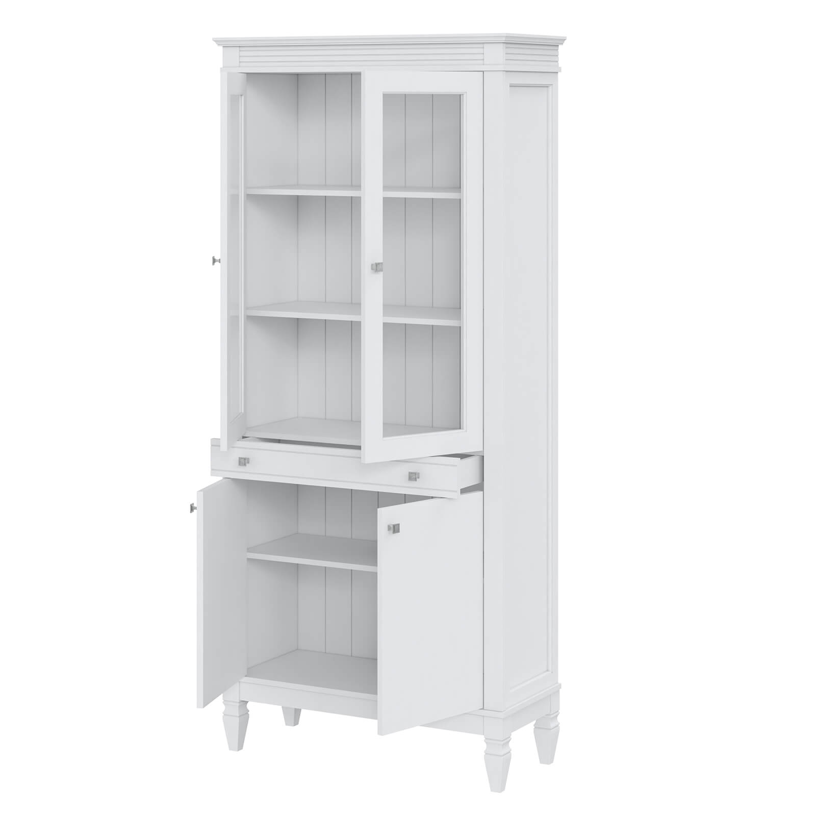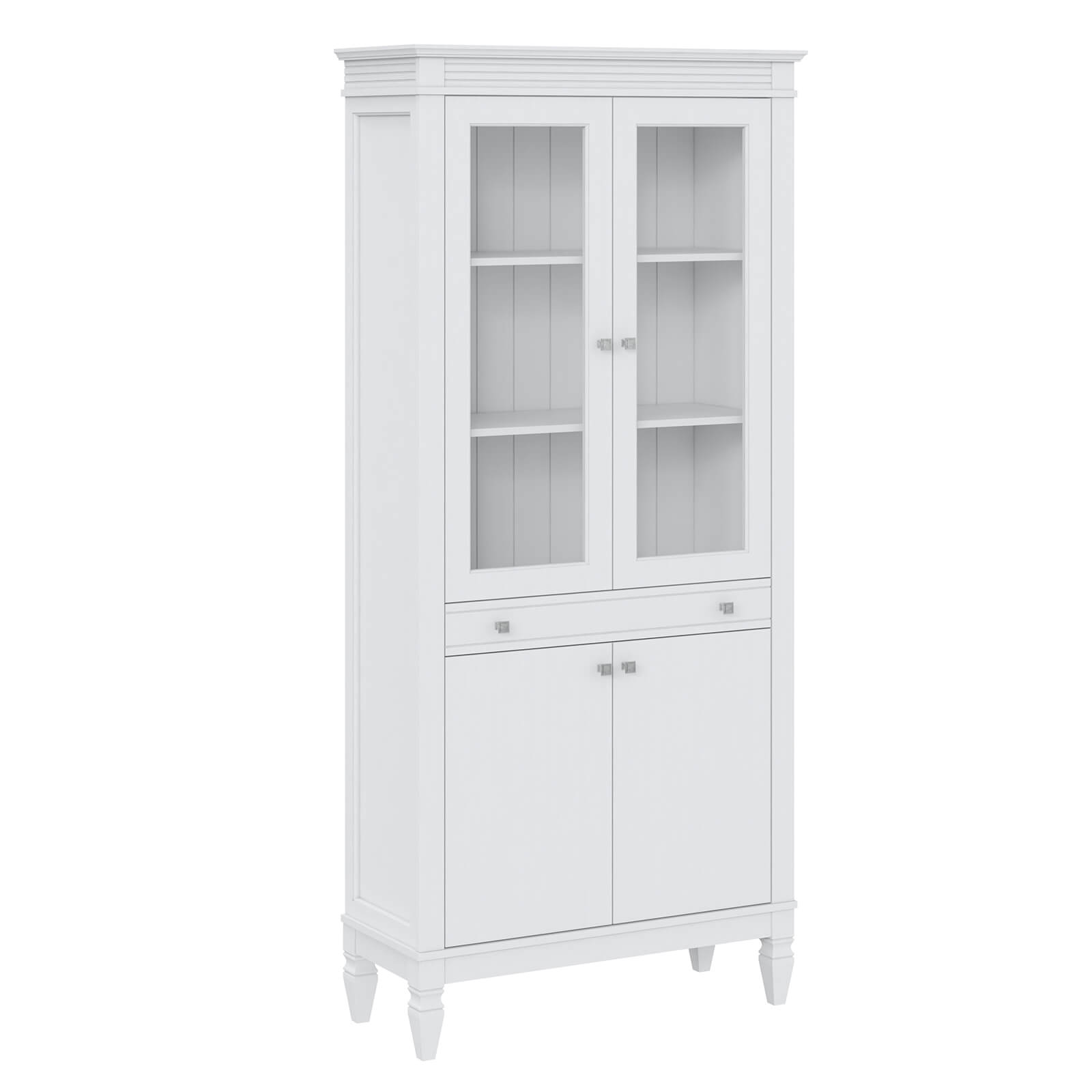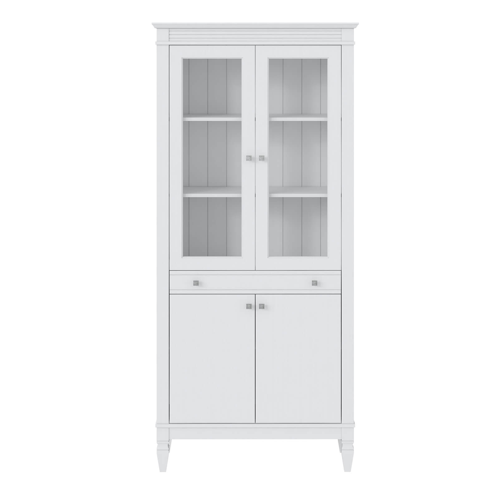 двумя стеклянными дверями и одним выдвижным ящиком.