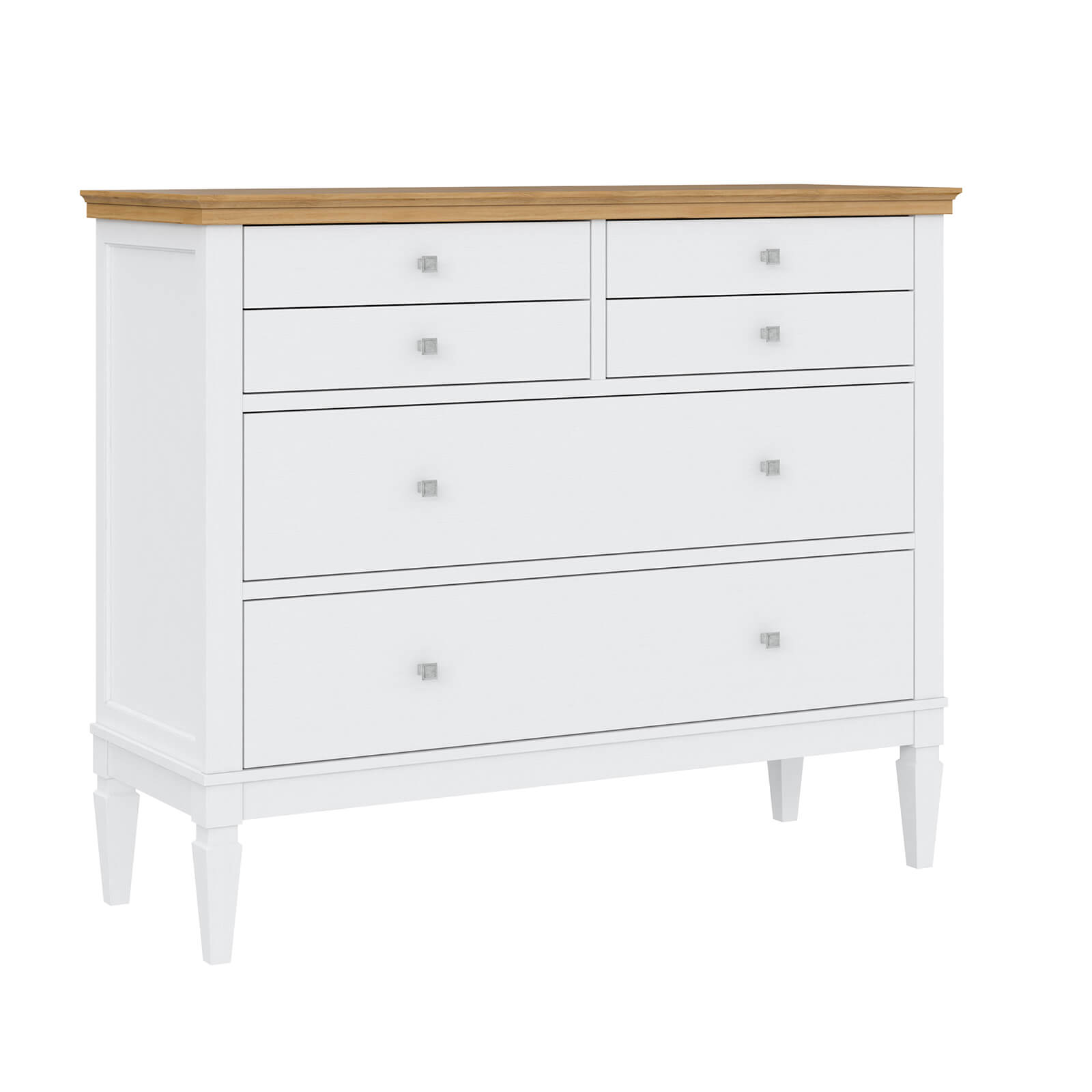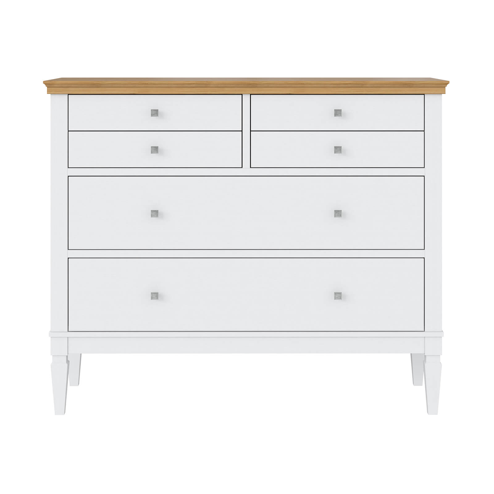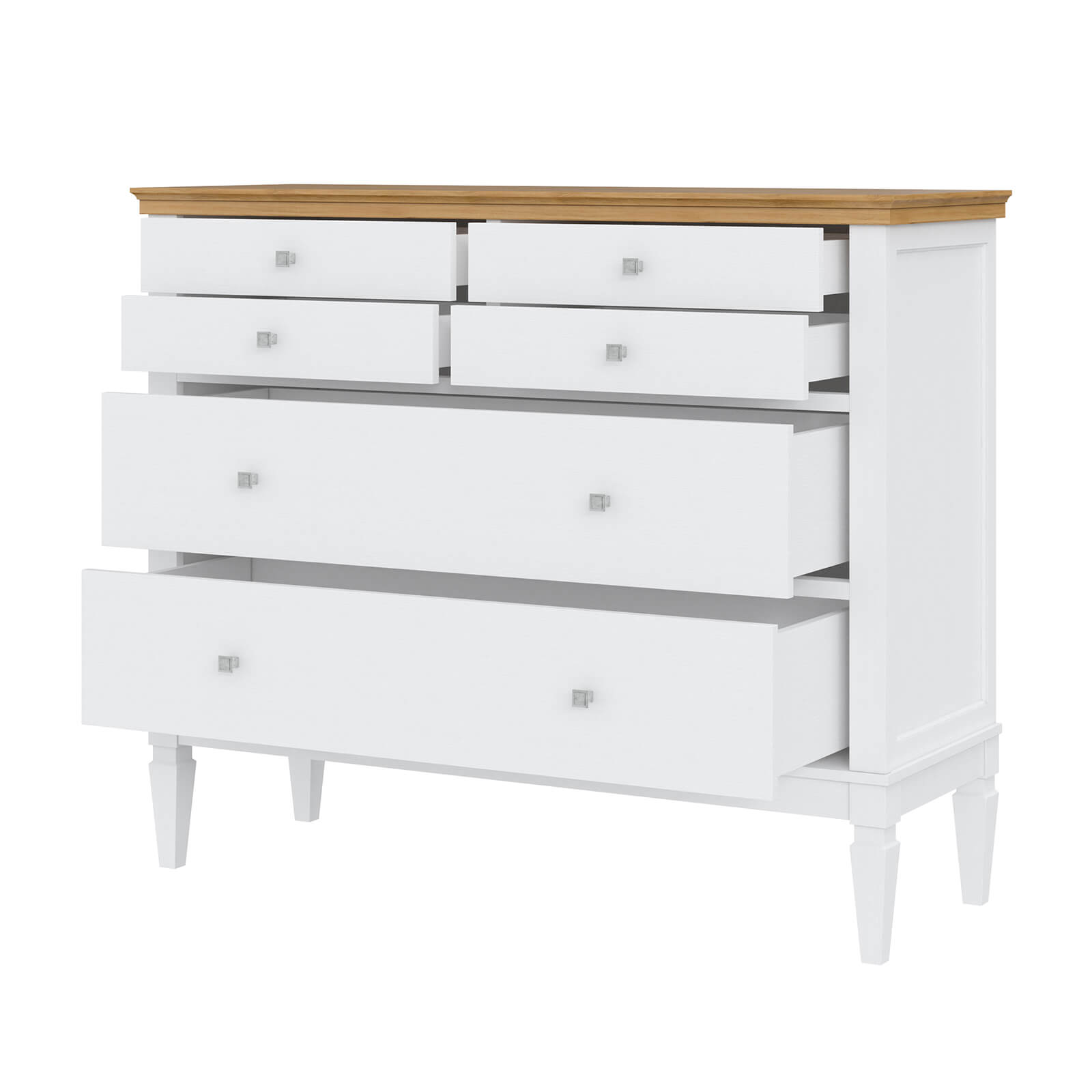 Комод оснащен двумя большими и четырьмя маленькими ящиками.Фурнитура на ящиках с доводчиками.