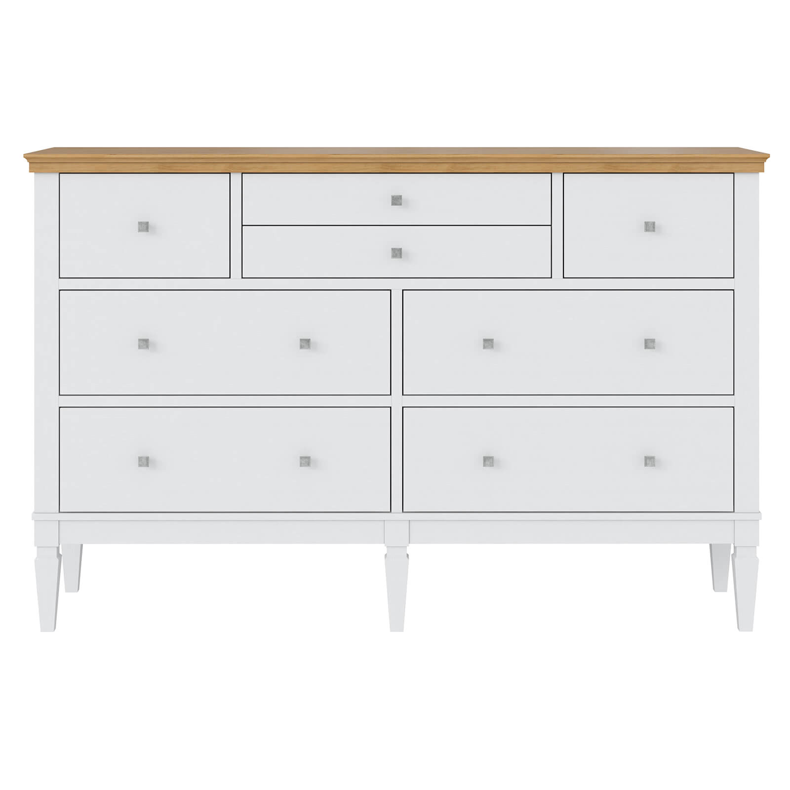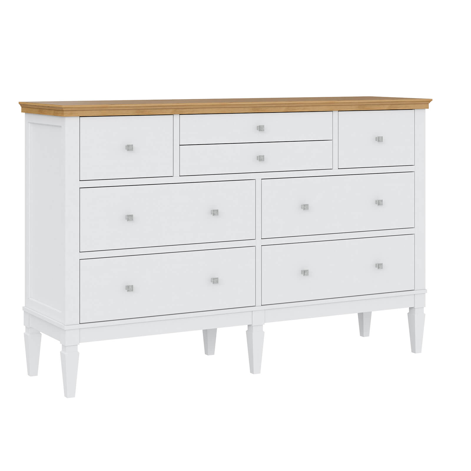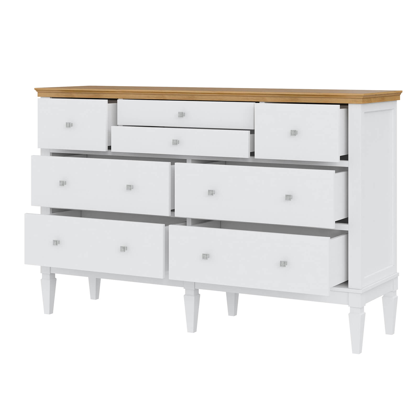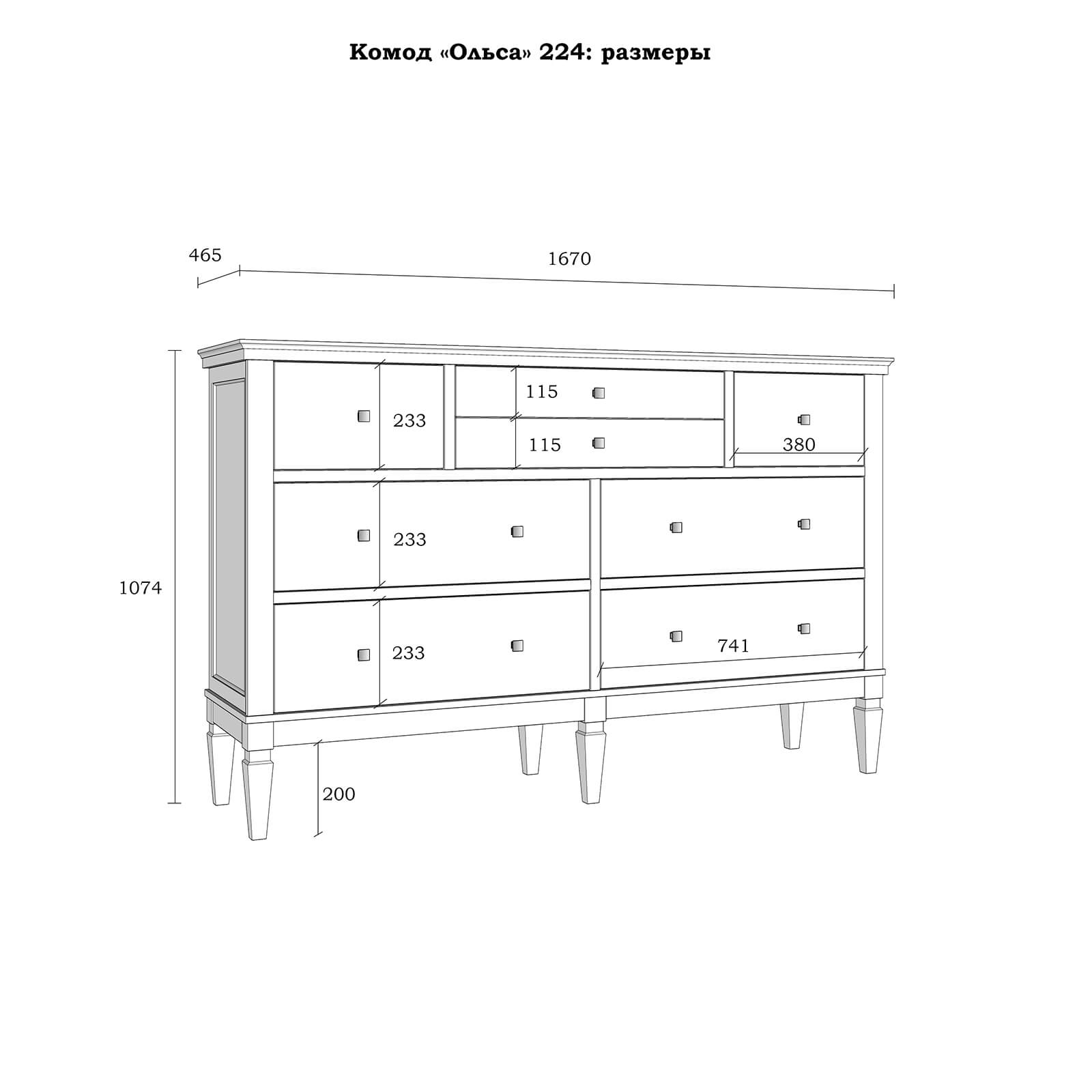 Комод оснащен четырьмя большими и четырьмя маленькими ящиками.Фурнитура на ящиках с доводчиками.