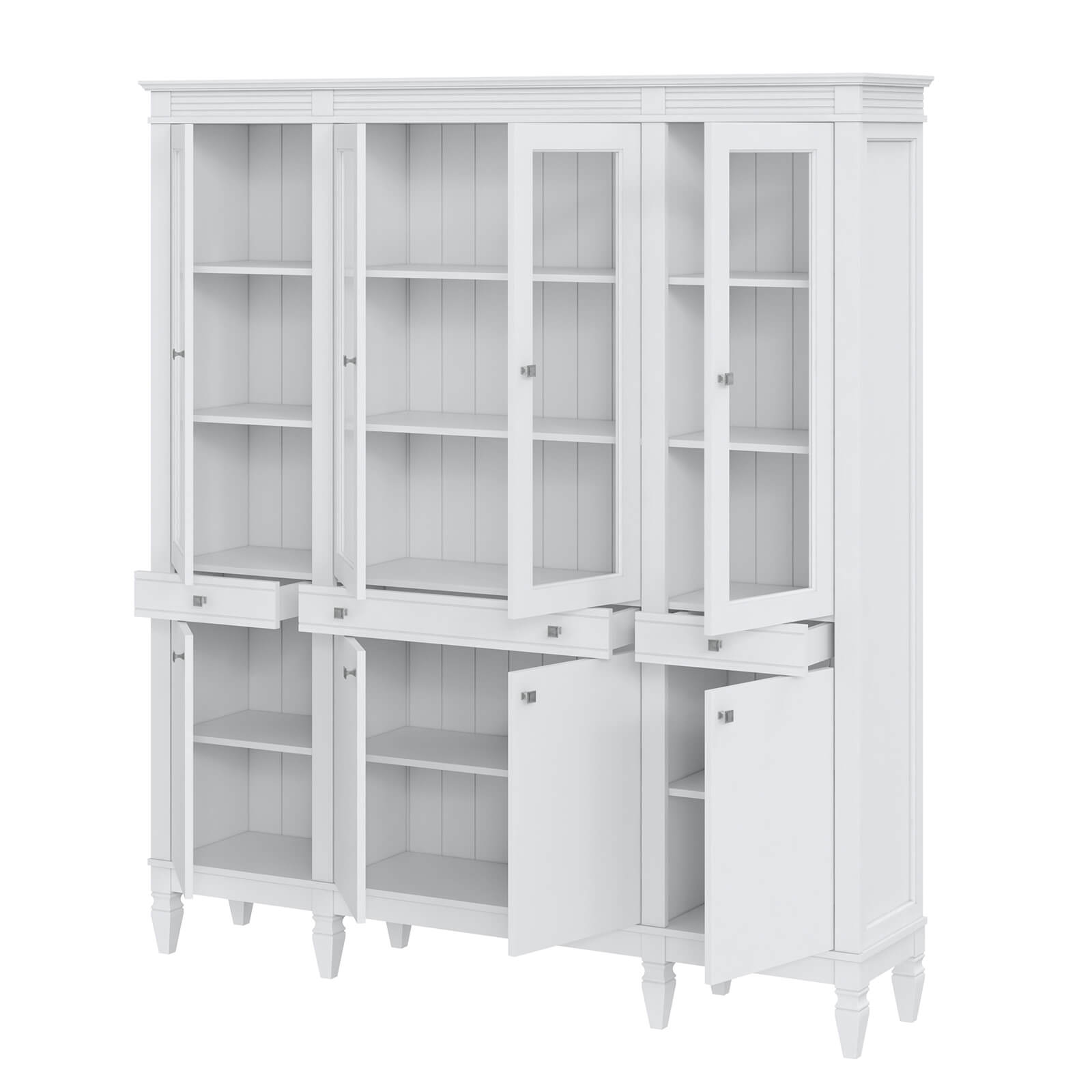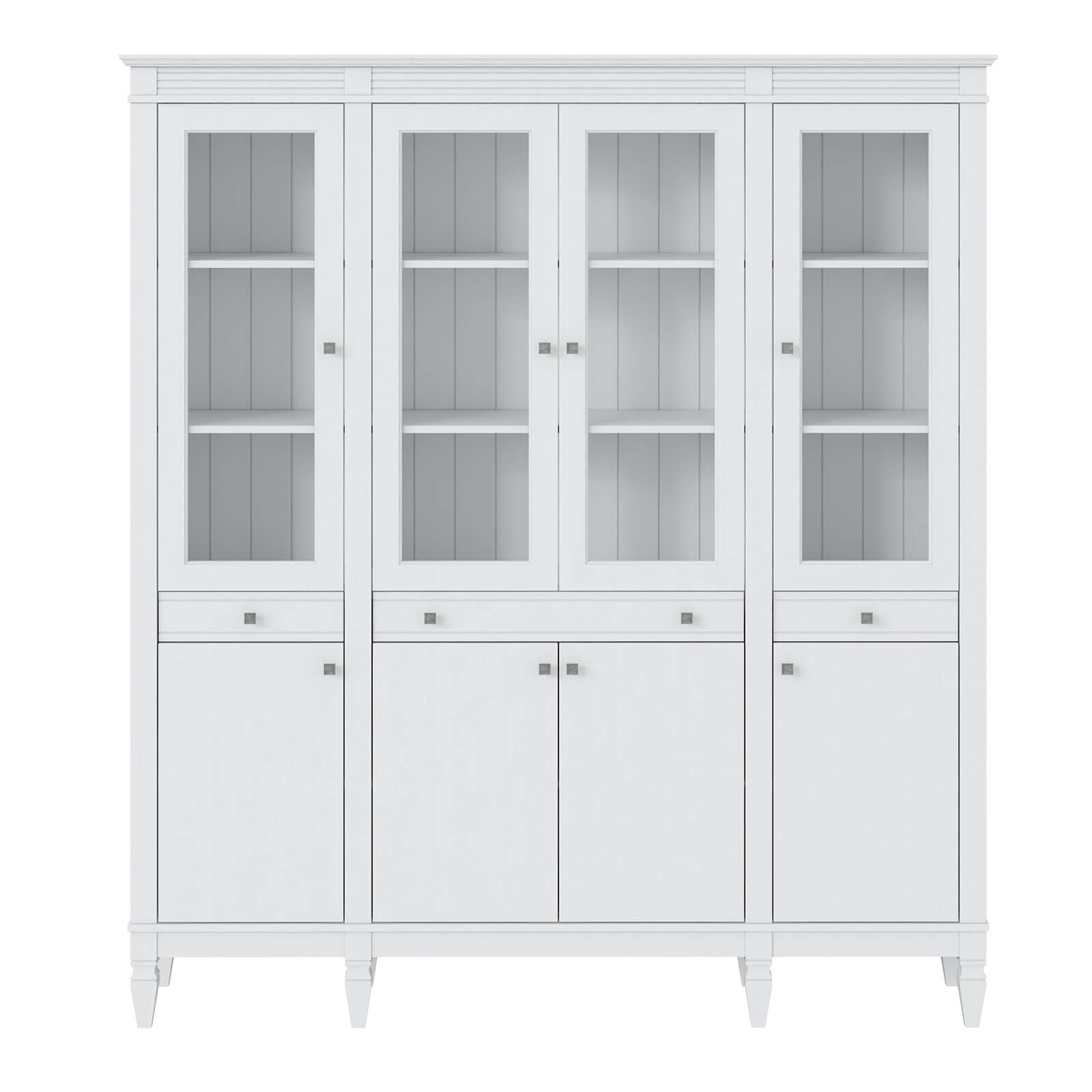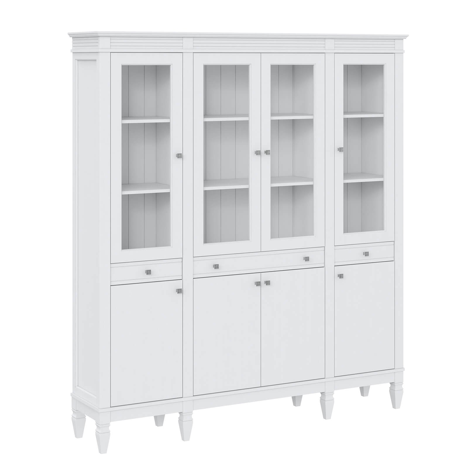 четыре распашные дверки в нижней части, четыре стеклянные,
