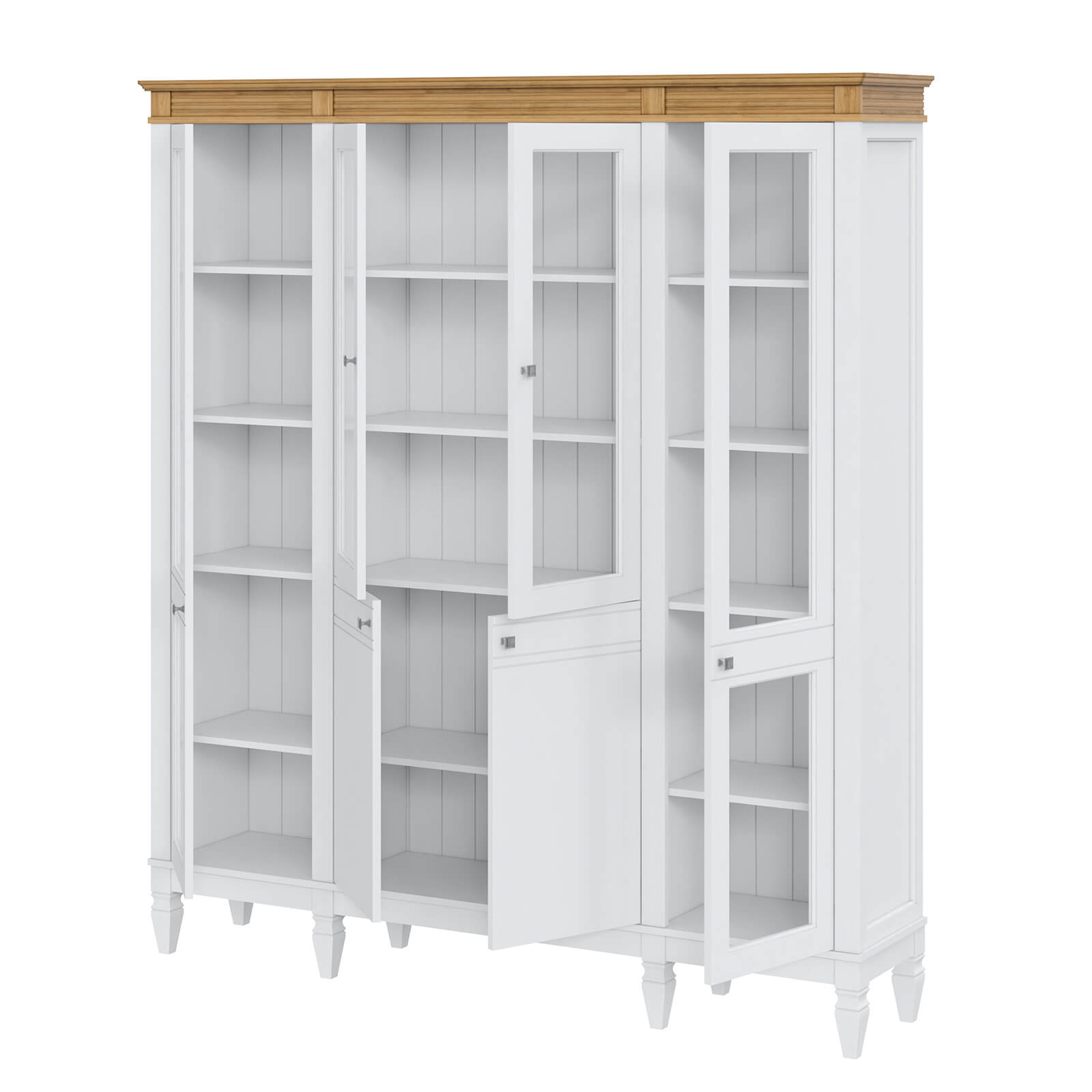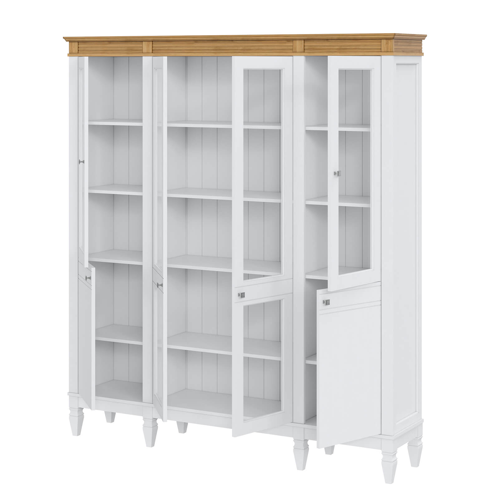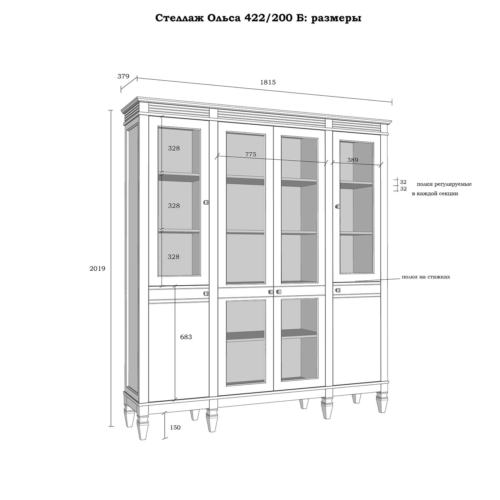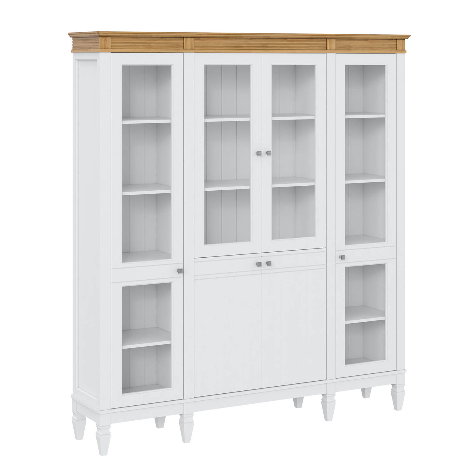 Оснащен четырьмя стеклянными распашными дверями и двумя дверями филенкой.