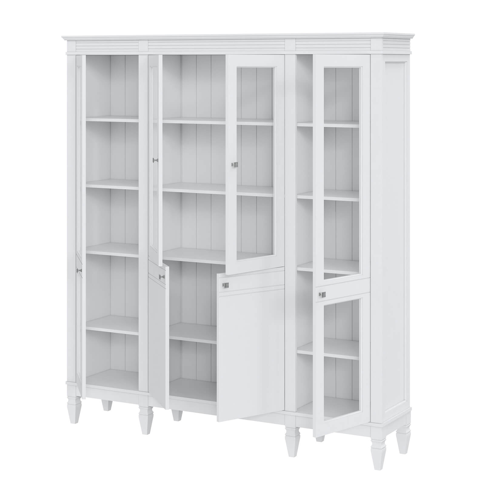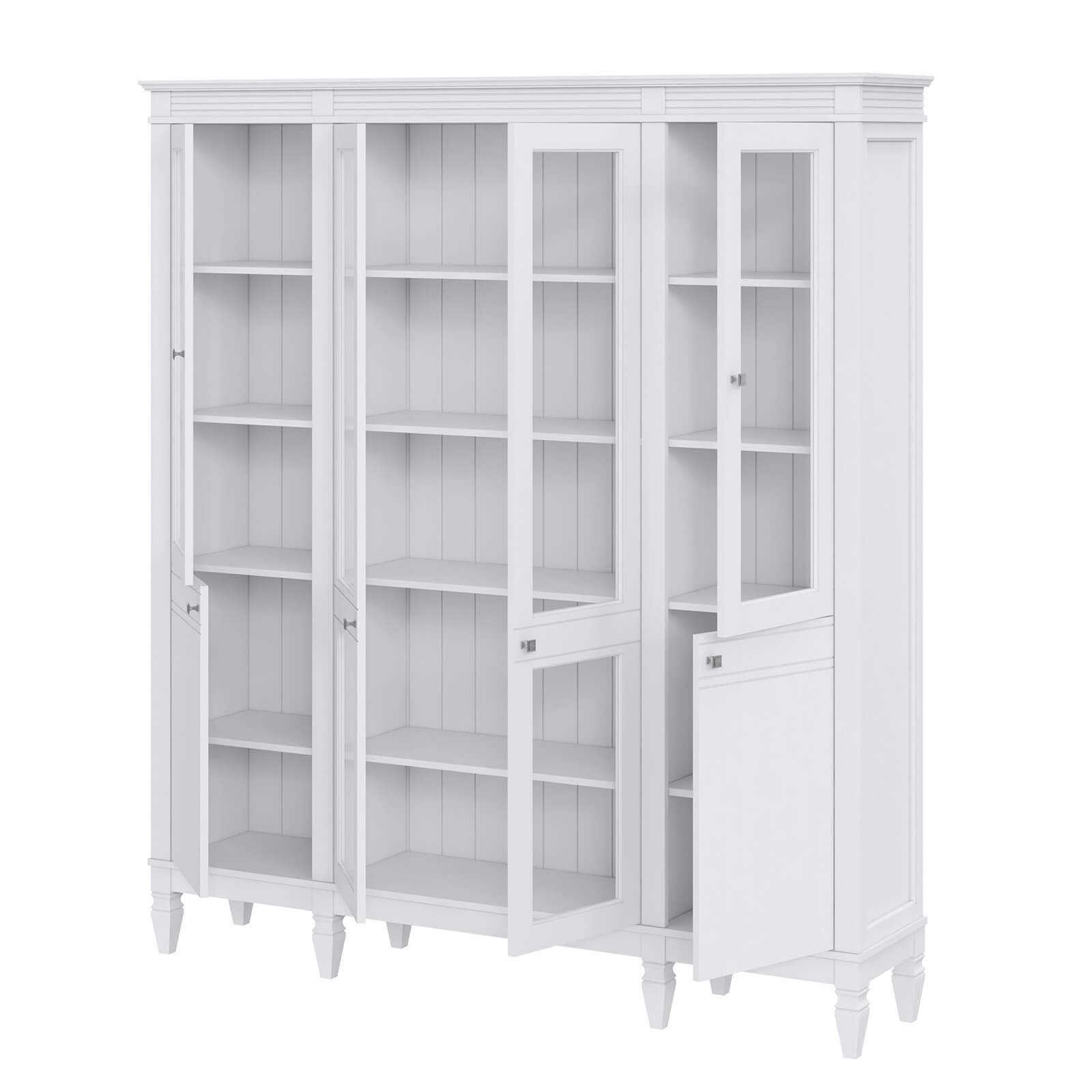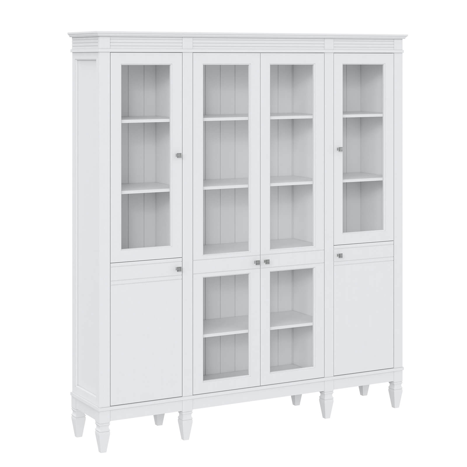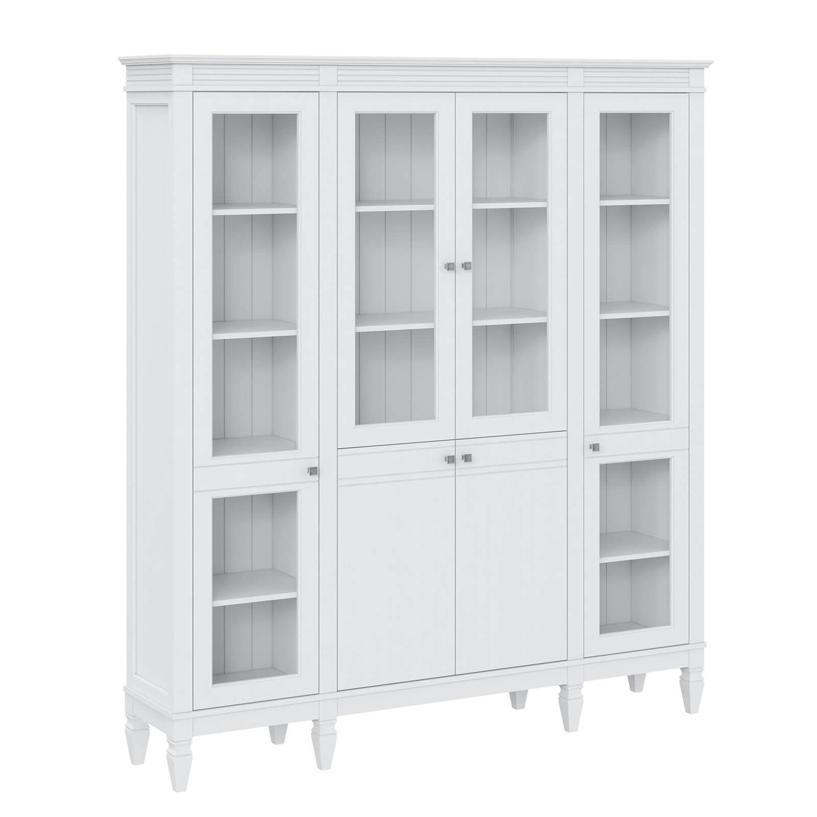 Оснащен четырьмя стеклянными распашными дверями и двумя дверями филенкой.