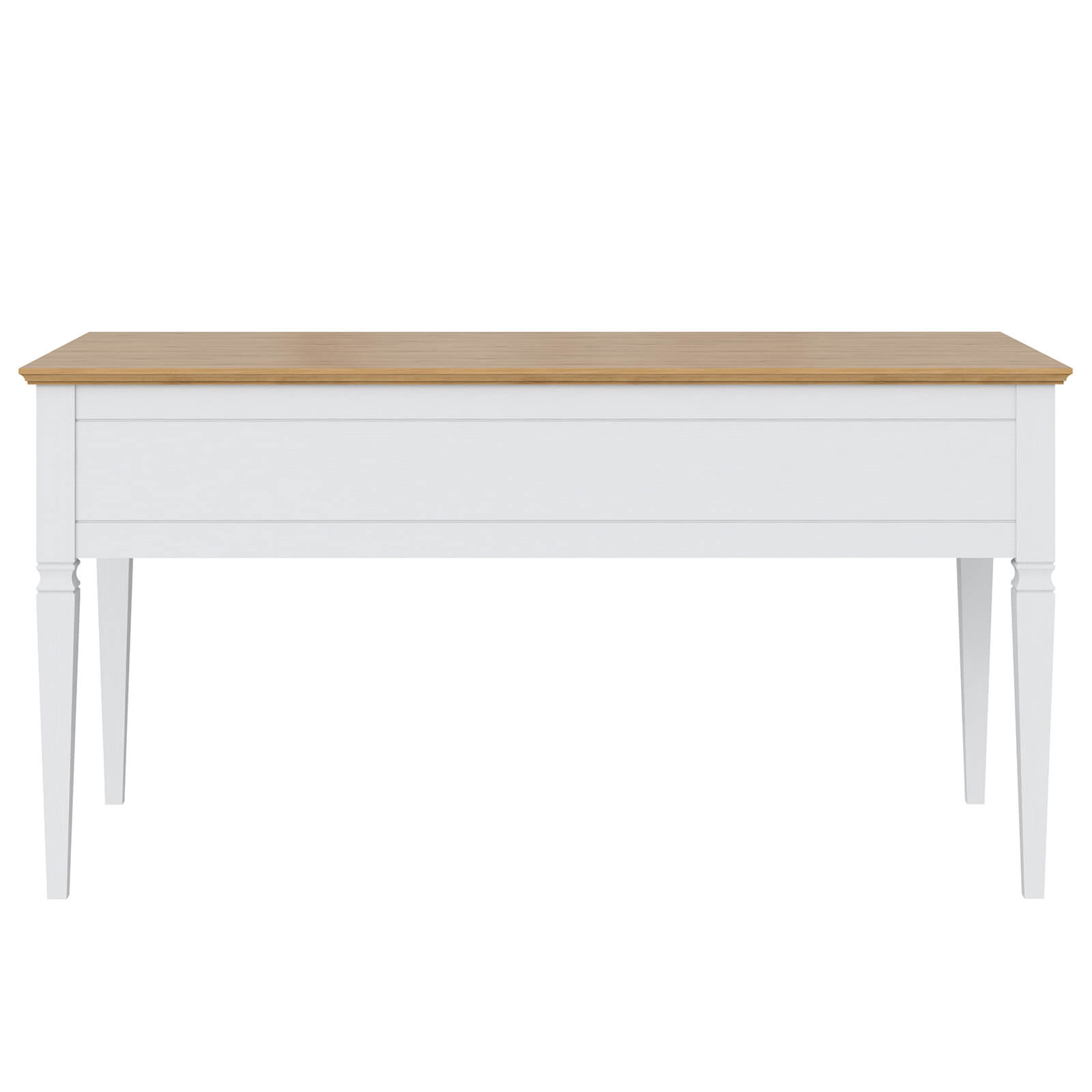 Это универсальная вещь, которая прослужит долгие годы благодаря тому, что сделана из натурального массива. Оснащена тремя выдвижными ящиками с металлическими ручками квадратной формы.