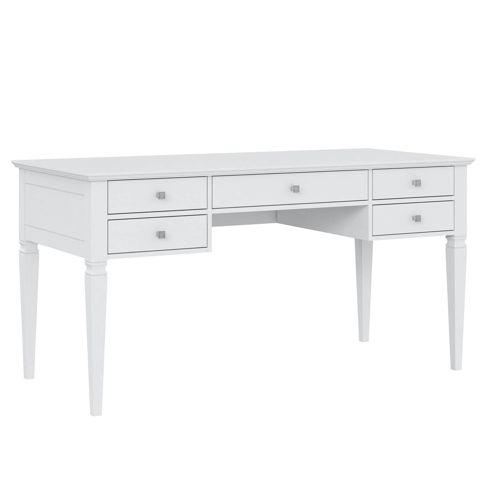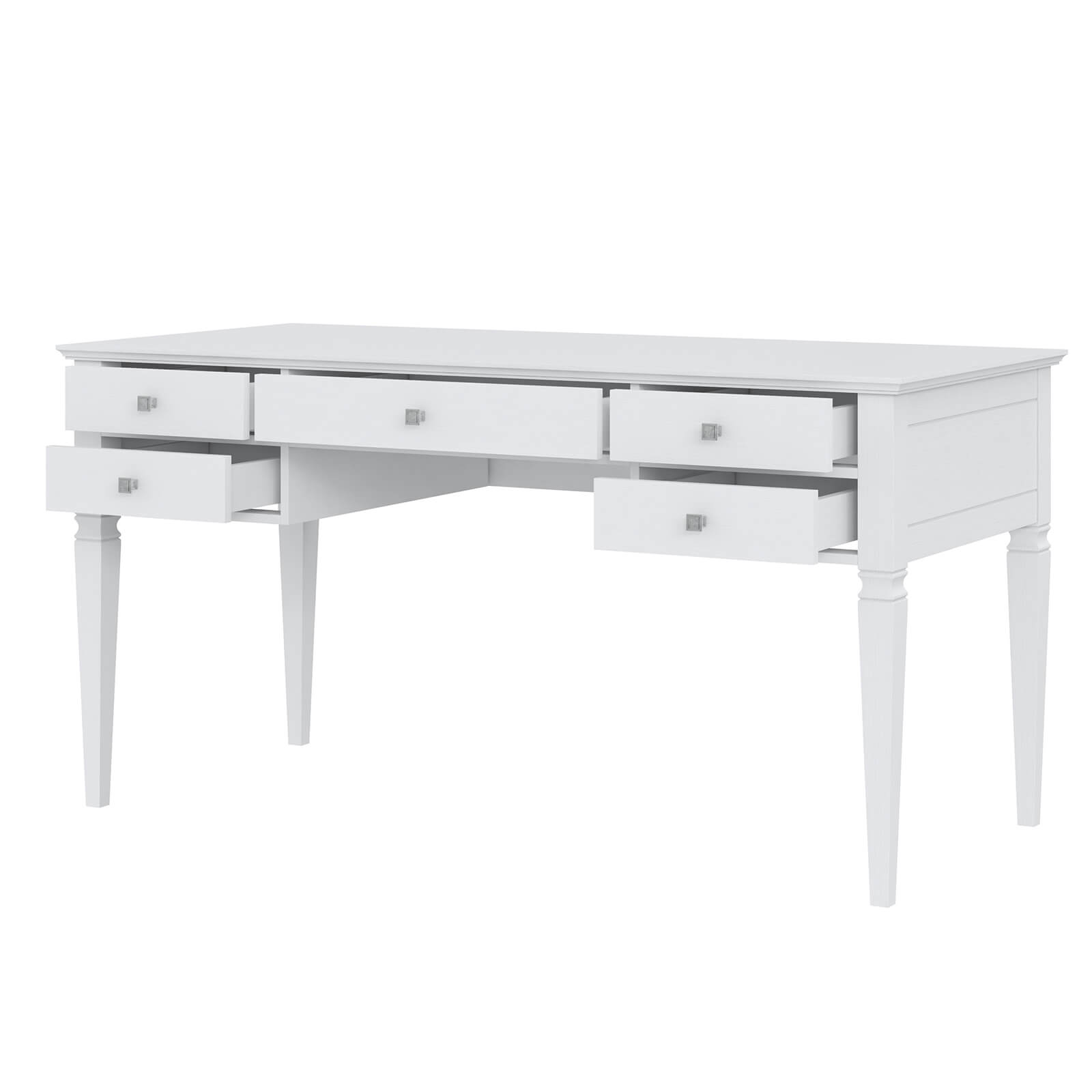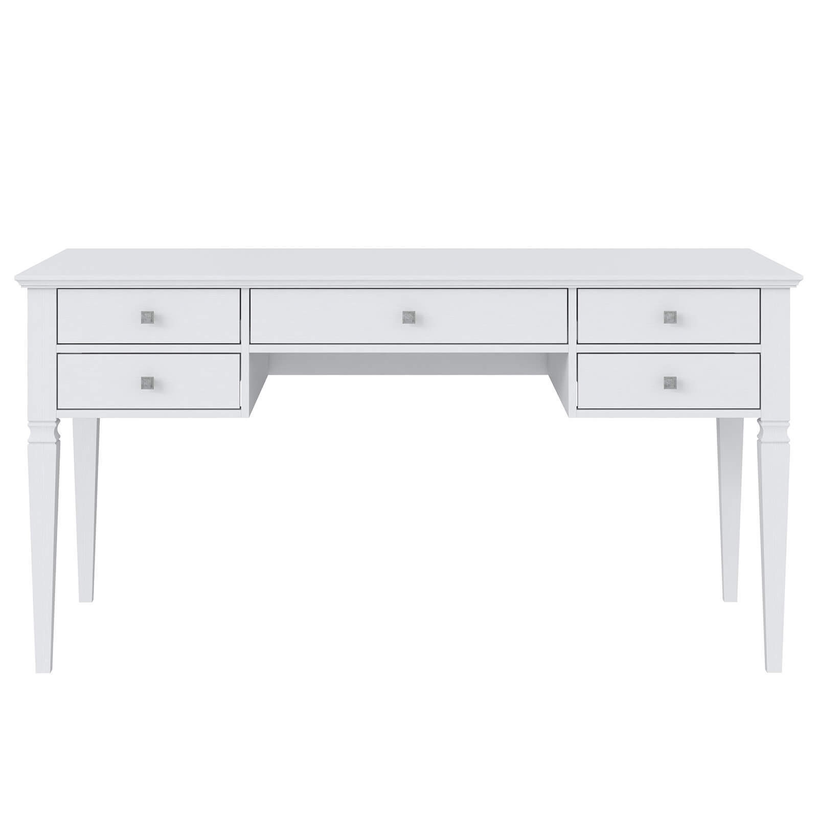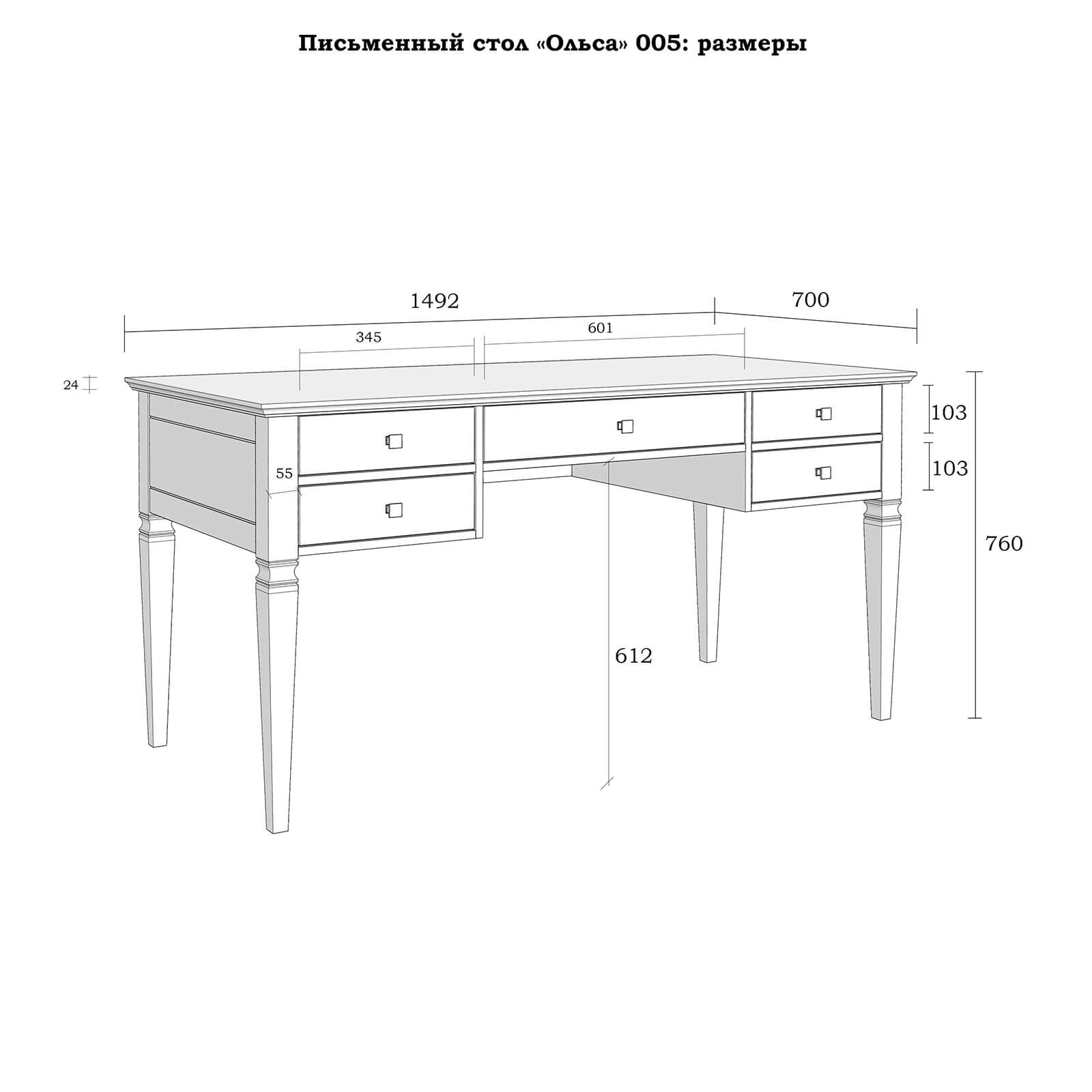 Оснащена пятью выдвижными ящиками с металлическими ручками.