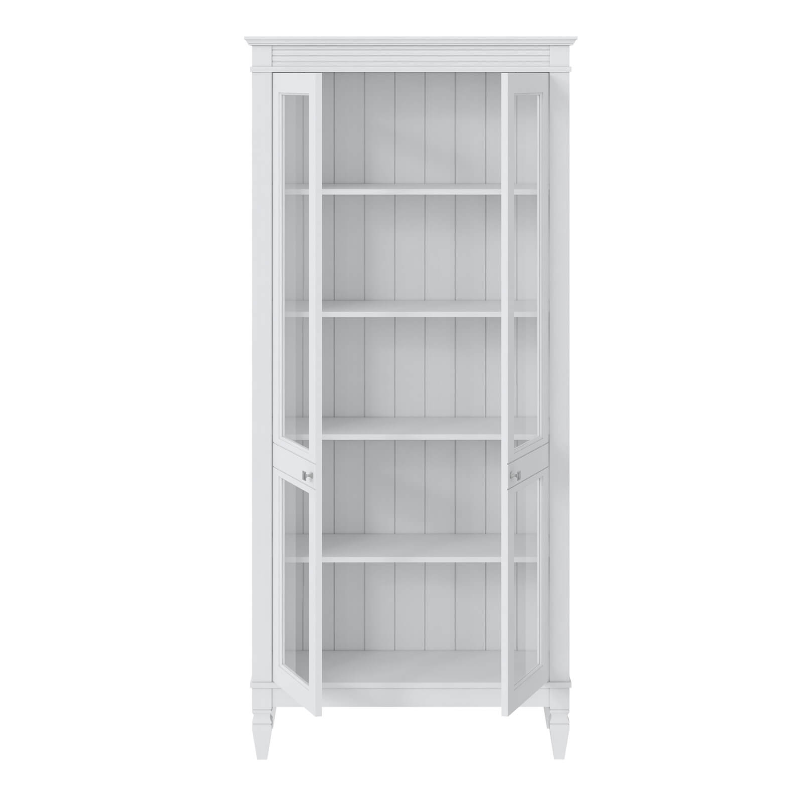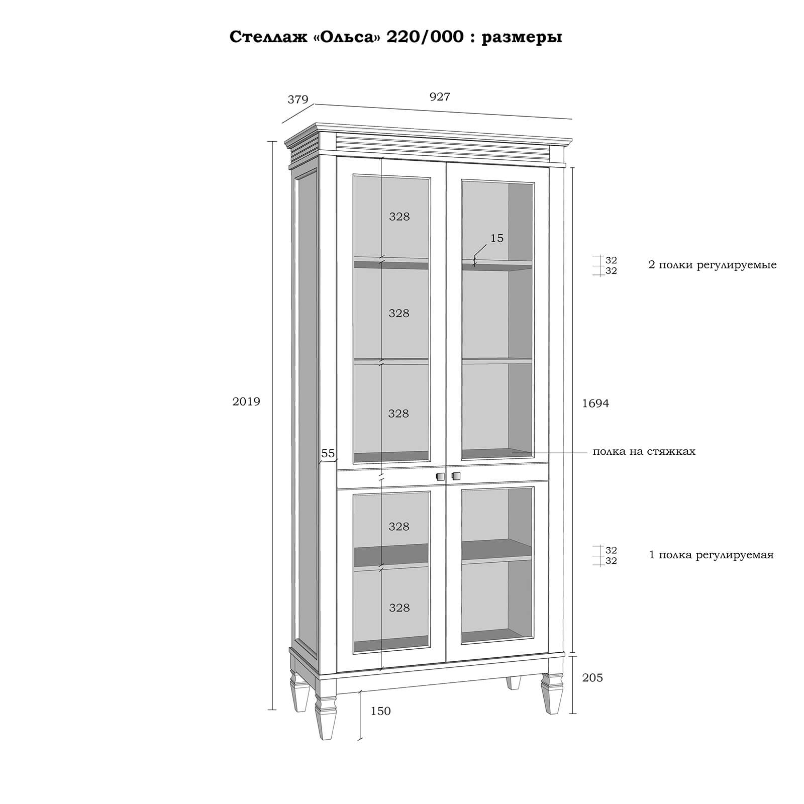 Оснащен внутри вместительными полками и двумя стеклянными дверями. Устойчиво держится на высоких ножках.