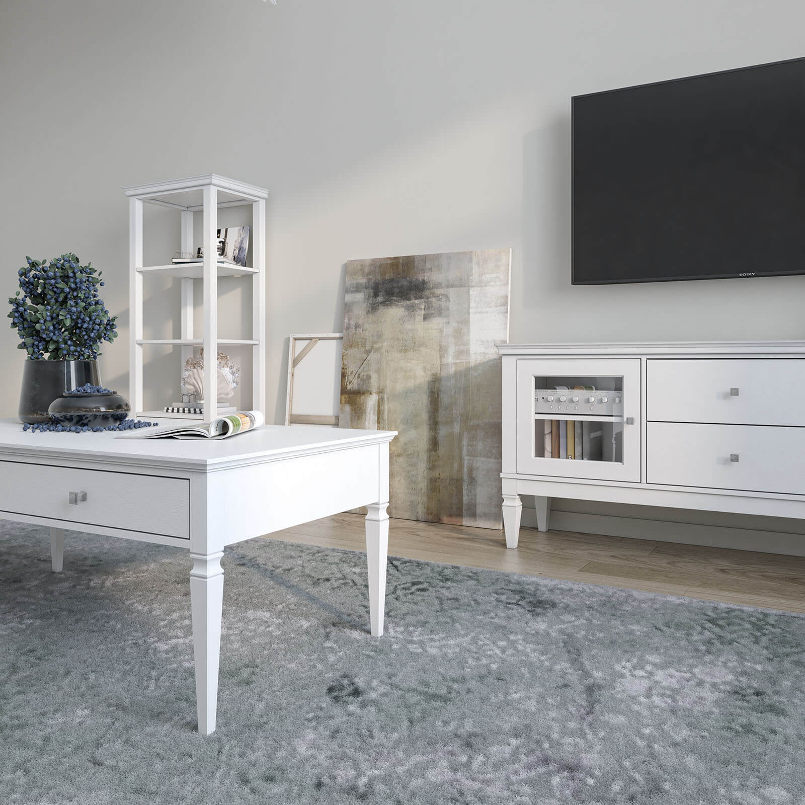 Предлагаем Вам привлекательную тумбу для ТВ «Ольса» 22 (1600) из массива сосны для гостиной или спальни.