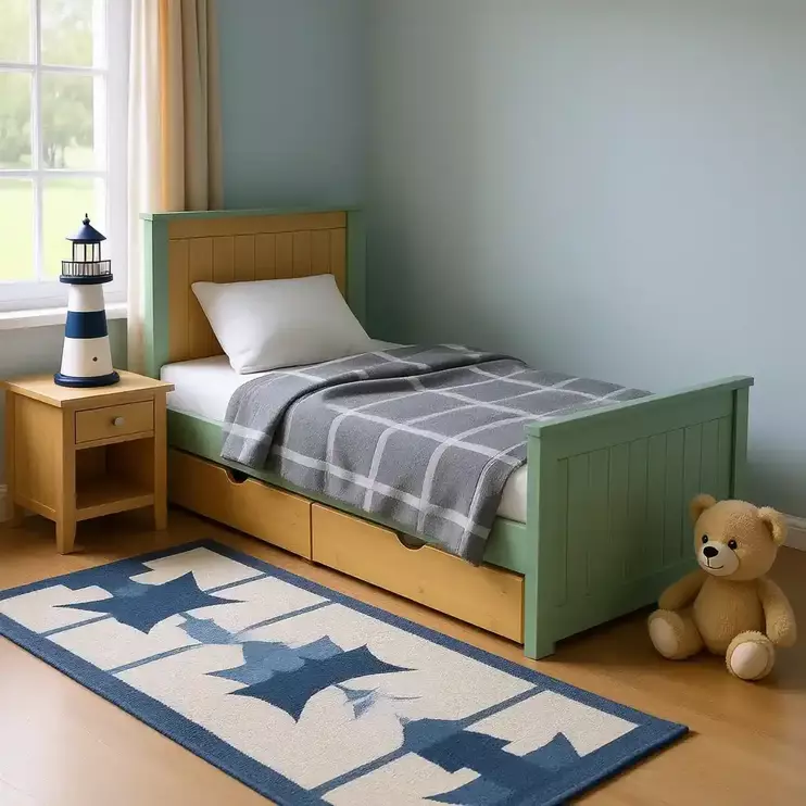 Мебель для детской «Армо» в скандинавском стиле привлекает внимание оригинальными фасадами в разных цветах и интересным декором в виде крестообразных накладок. В коллекции есть односпальные кровати, комоды с ящиками, сундуки, бельевые шкафы, стулья, стеллаж, напольная вешалка, навесное зеркало.