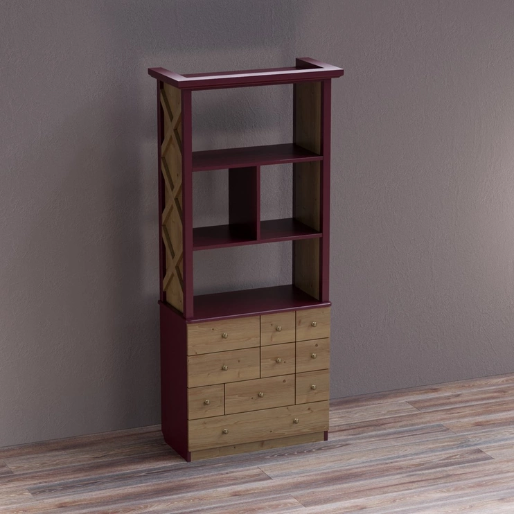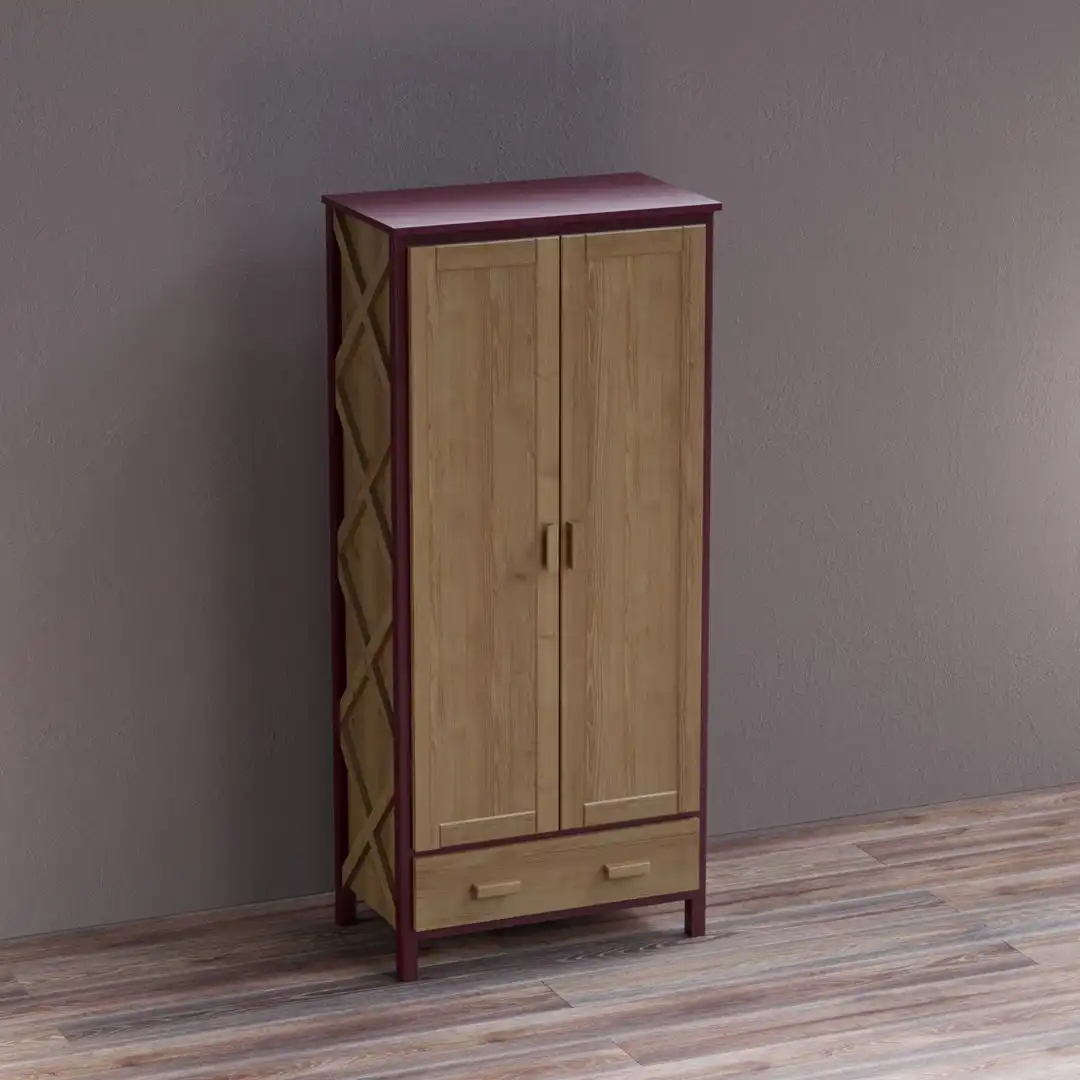 Мебель «Армо» изготавливается из натурального дерева – массива сосны. Ящики устанавливаются на направляющих скрытого монтажа. На боковых стенках декоративные накладки крест-накрест.