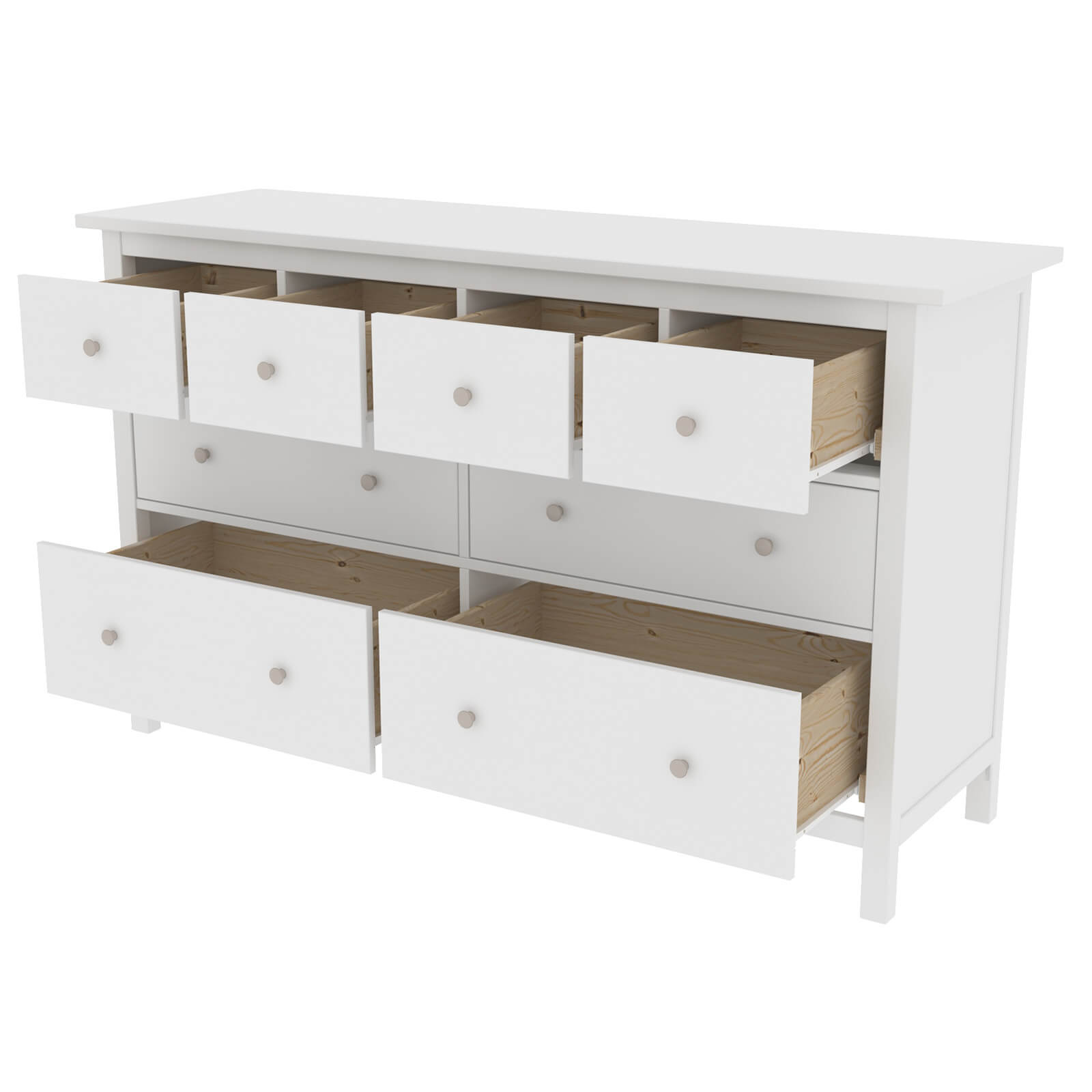 Комод оснащен восемью ящиками.
