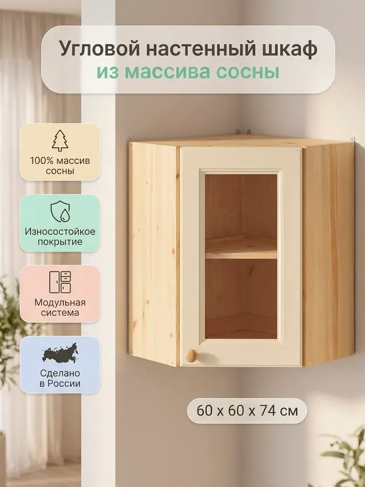 Настенный кухонный шкаф «Весури» из массива карельской сосны.