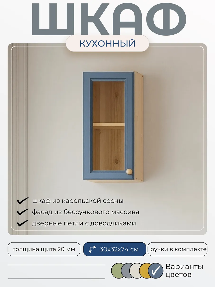 Настенный однодверный кухонный шкаф «Весури» из массива карельской сосны.