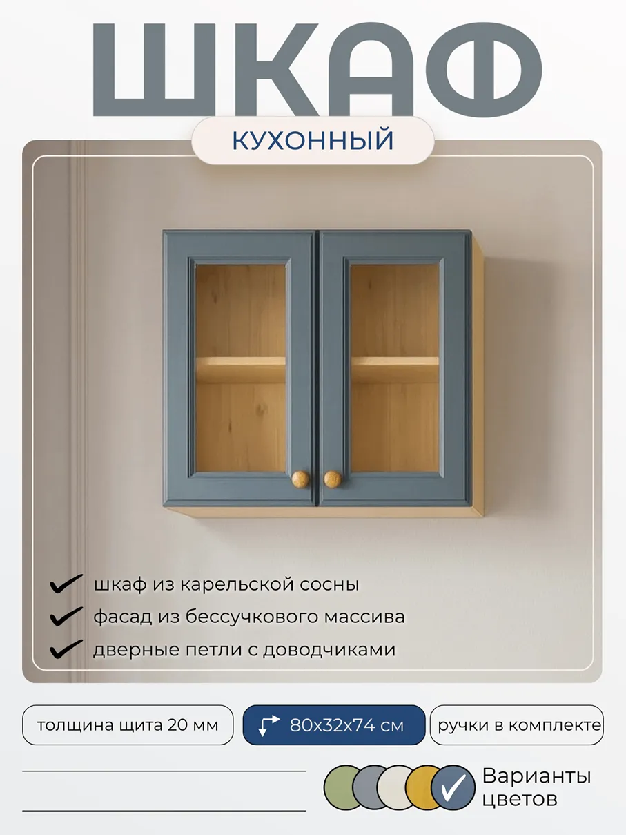 Настенный кухонный шкаф «Весури» из массива карельской сосны.