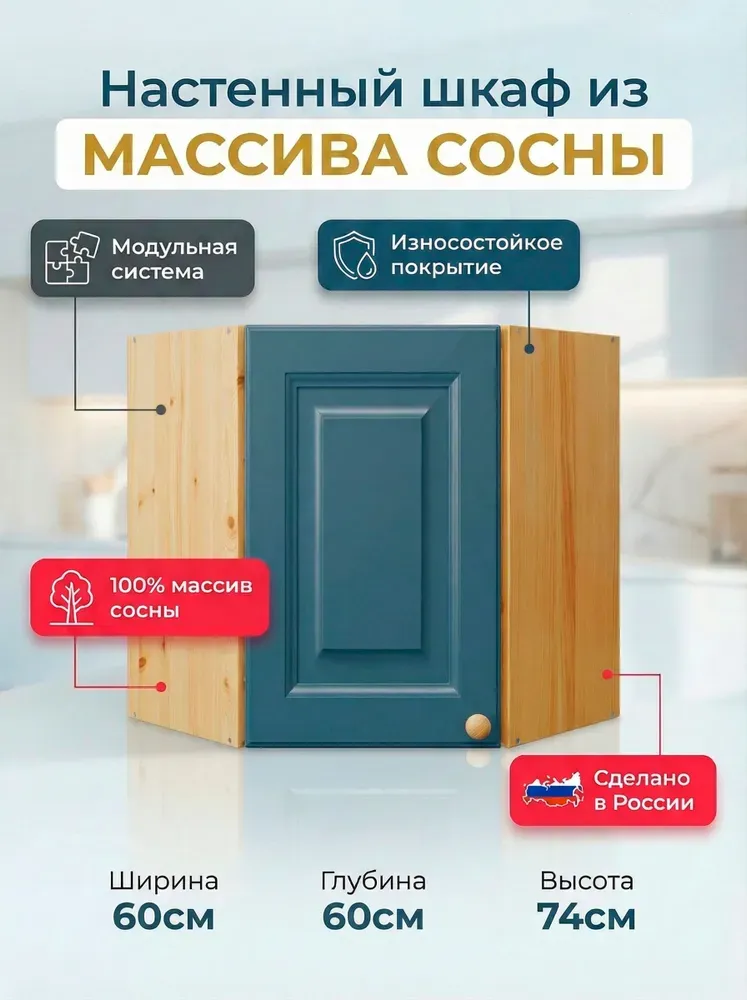 Настенный кухонный шкаф «Весури» из массива карельской сосны