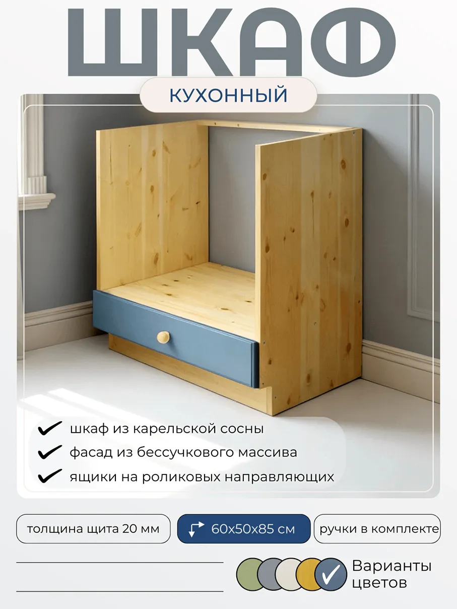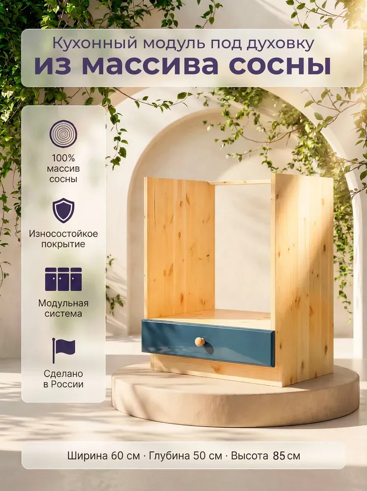 Тумба «Весури» под духовку, с ящиком, из массива карельской сосны.