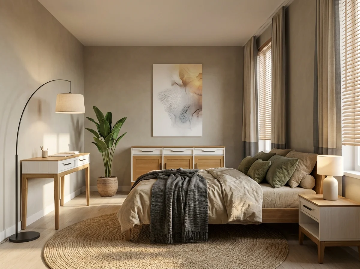 Тумба имеет основание с высокими крепкими ножками, которые обеспечивают ей устойчивость. Кроме того, тумбу не нужно сдвигать во время уборки: под ней остается достаточно пространства, в том числе для уборки роботом-пылесосом. За каждой дверцей расположены отделения с полками, на которых можно хранить одежду, постельное белье, предметы гигиены. На дверцах и ящиках чёрные профильные ручки.
