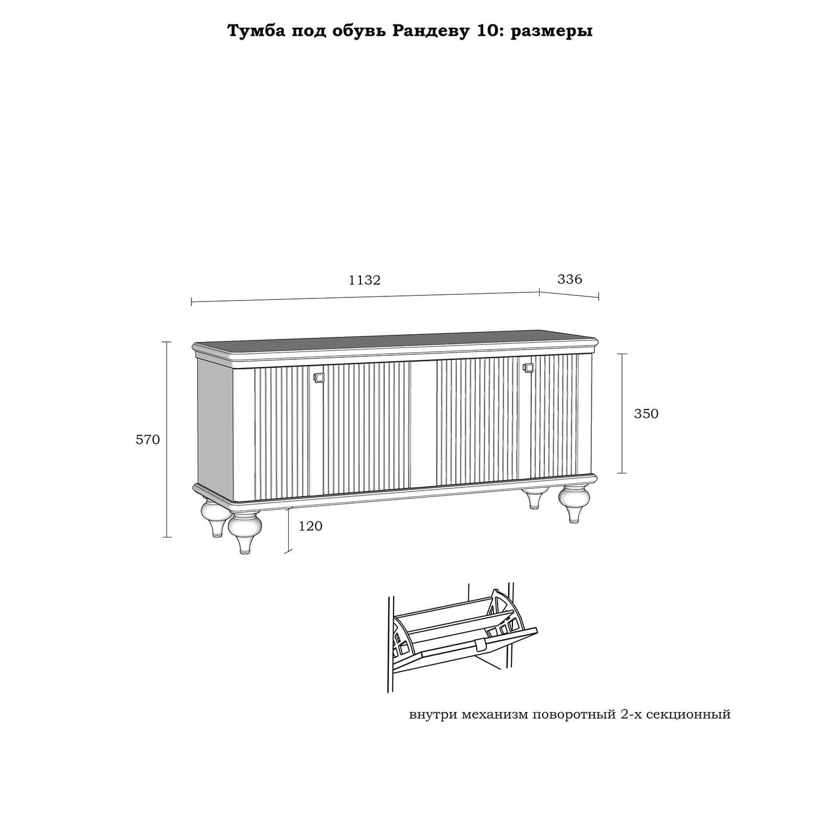 Тумба под обувь «Рандеву» 10 (белый лак/антик 24)