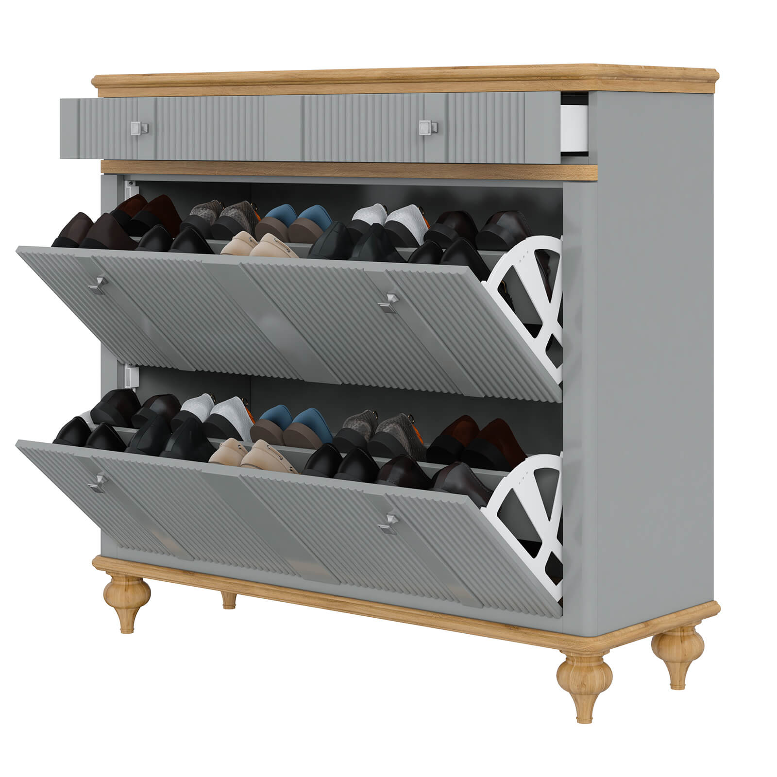 Она состоит из двух вместительных отделений, над которыми находится выдвижной ящик для мелочей. Подойдет как для прихожей в городской квартире, так и для загородного дома.