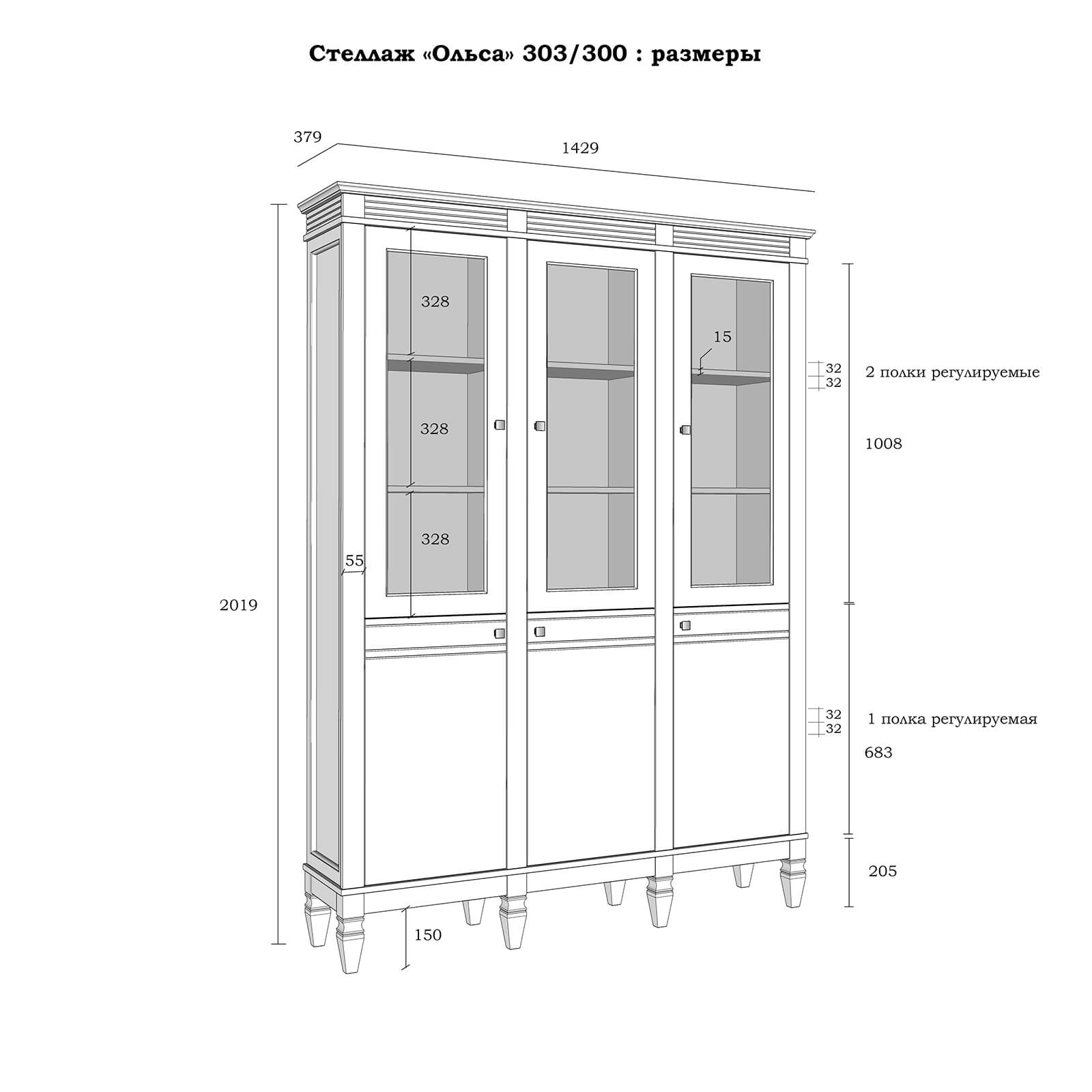 Стеллаж "Ольса" 303/300 из массива сосны, 143x202x38 см Большой и вместительный стеллаж “Ольса” - находка для просторной гостиной, библиотеки или кабинета. Здесь вы сможете разместить не только любимые книги, но и посуду и другие нужные вещи. Визуально разделен на три вертикальных секции, в каждой из которых четыре полки. Сделан из натурального массива, поэтому может выдерживать значительные нагрузки. Особенности Размеры 143 х 202 х 38 см; Основа - экологически чистая сосна; Использована фурнитура немецкого бренда; Модель в цвете «белый лак», «белый лак/антик 24», «серый 7042», «серый 7042/антик 24». Фурнитура Петли - BLUM (Германия); Ручки - Giusti (Италия) стиль классика, имеют форму квадрата, материал металл, цвет серебро состаренное; Особенности покрытия Деревянную мебель чаще всего обрабатывают водными лакокрасочными материалами. Это наиболее популярный в мире вариант покрытия, который известен отсутствием токсического воздействия на организм. Его безопасность позволяет пользоваться им даже при изготовлении детских игрушек, что подтверждено европейским сертификатом EN71-3. При этом подобная обработка надежно защищает дерево от лишней влаги, сырости, препятствует появлению плесени и грибков. Таким образом, изделие прослужит вам дольше и будет радовать первозданным внешним видом.