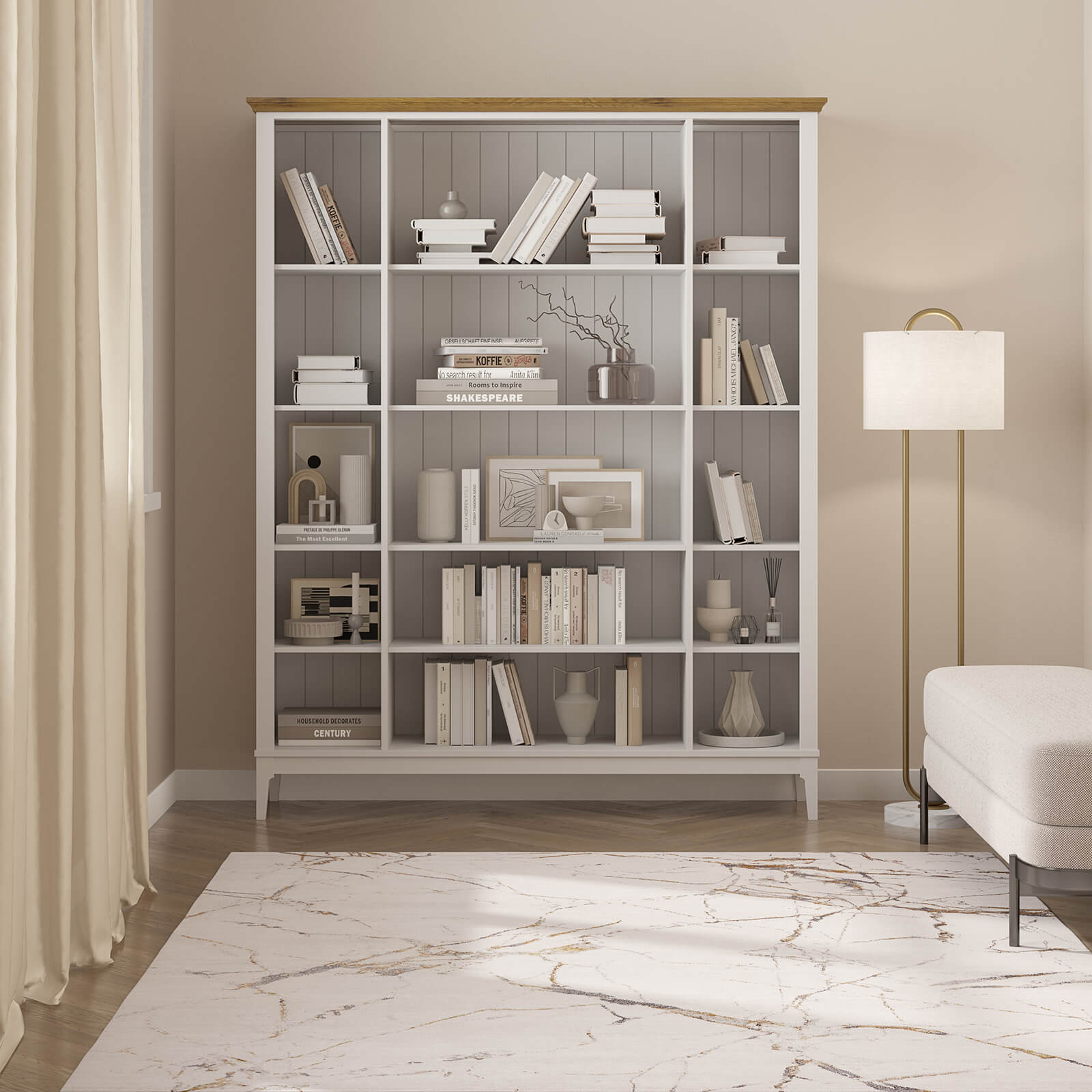Представляем стеллаж «Квадро-С» 40-205, выполненный из массива сосны. Этот высокий стеллаж сочетает в себе четыре широкие полки в центральной части и восемь узких полок по бокам, что позволяет удобно организовать хранение книг, декоративных элементов и других предметов.