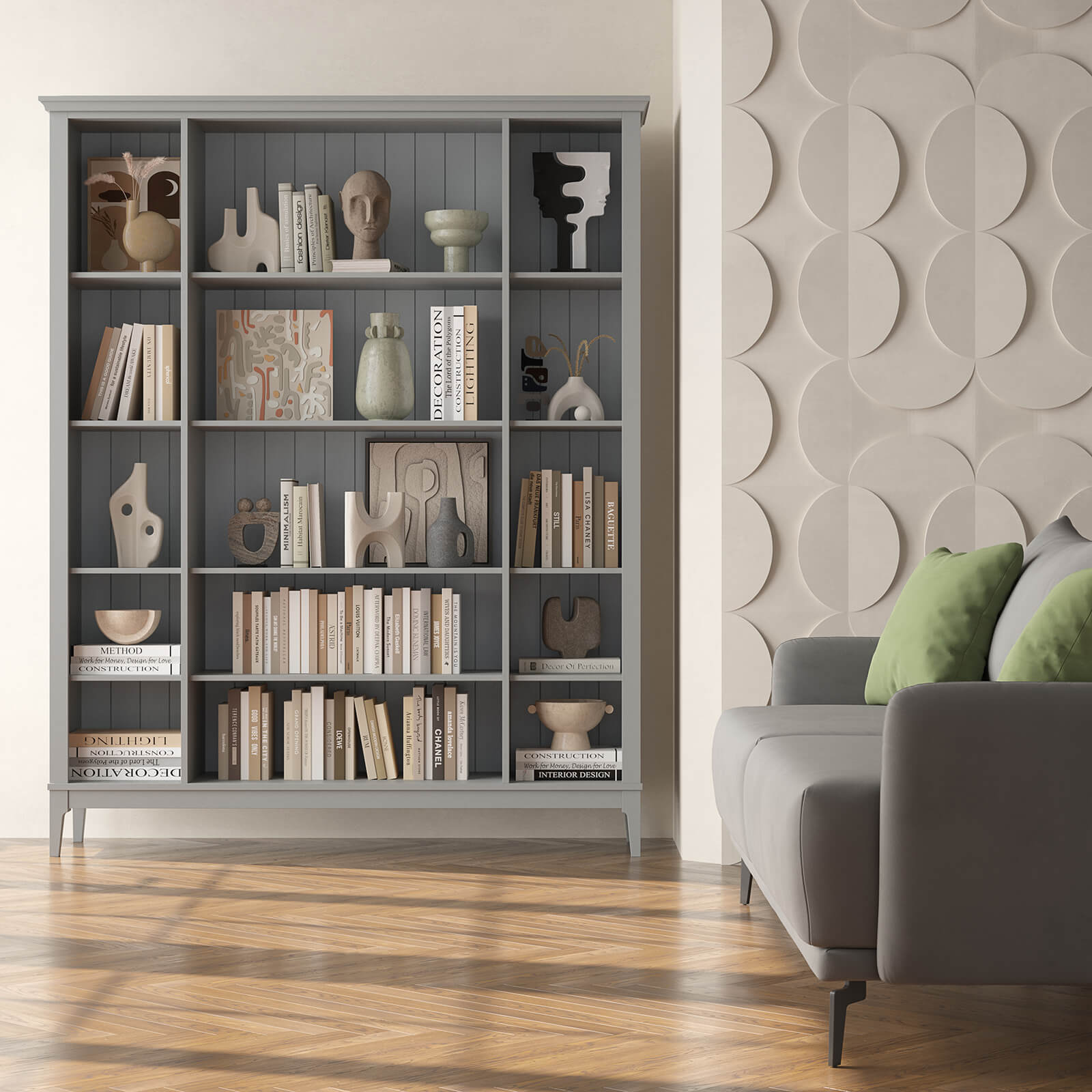 Представляем стеллаж «Квадро-С» 40-205, выполненный из массива сосны. Этот высокий стеллаж сочетает в себе четыре широкие полки в центральной части и восемь узких полок по бокам, что позволяет удобно организовать хранение книг, декоративных элементов и других предметов.