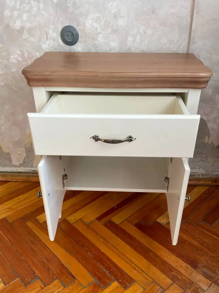 Все ящики этого белого прикроватного комода на шариковых направляющих полного выдвижения.