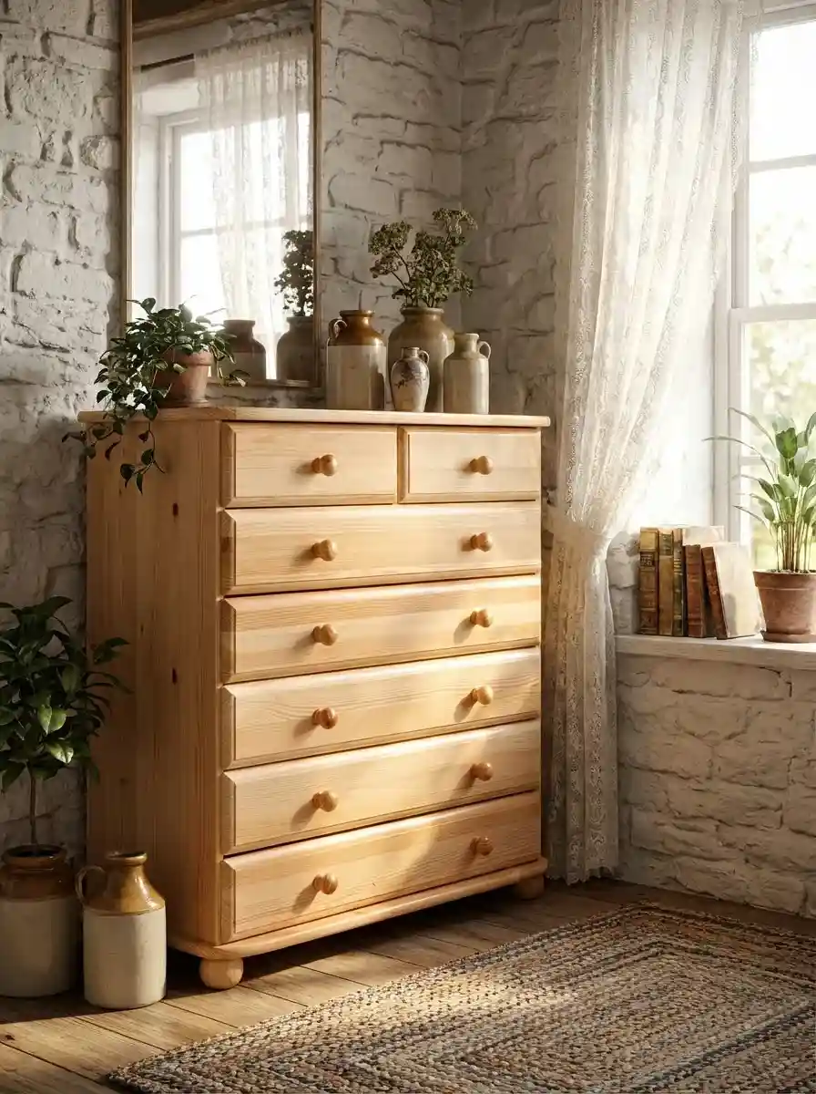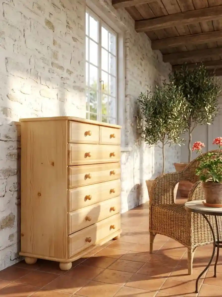 Комод Вокко 82-07 выполнен из массива сосны высокого качества, и покрыт матовым бесцветным мебельным лаком «нц», который защищает дерево от старения и от воздействия факторов окружающей среды. Такое покрытие безопасно для здоровья человека и домашних животных. Не вызывает аллергических реакций, не имеет неприятного запаха.