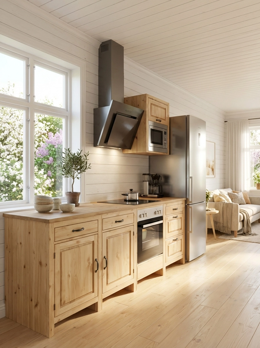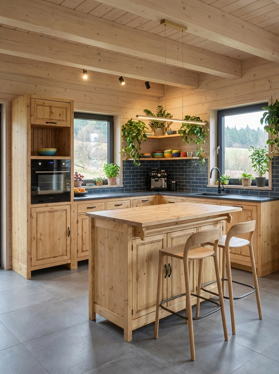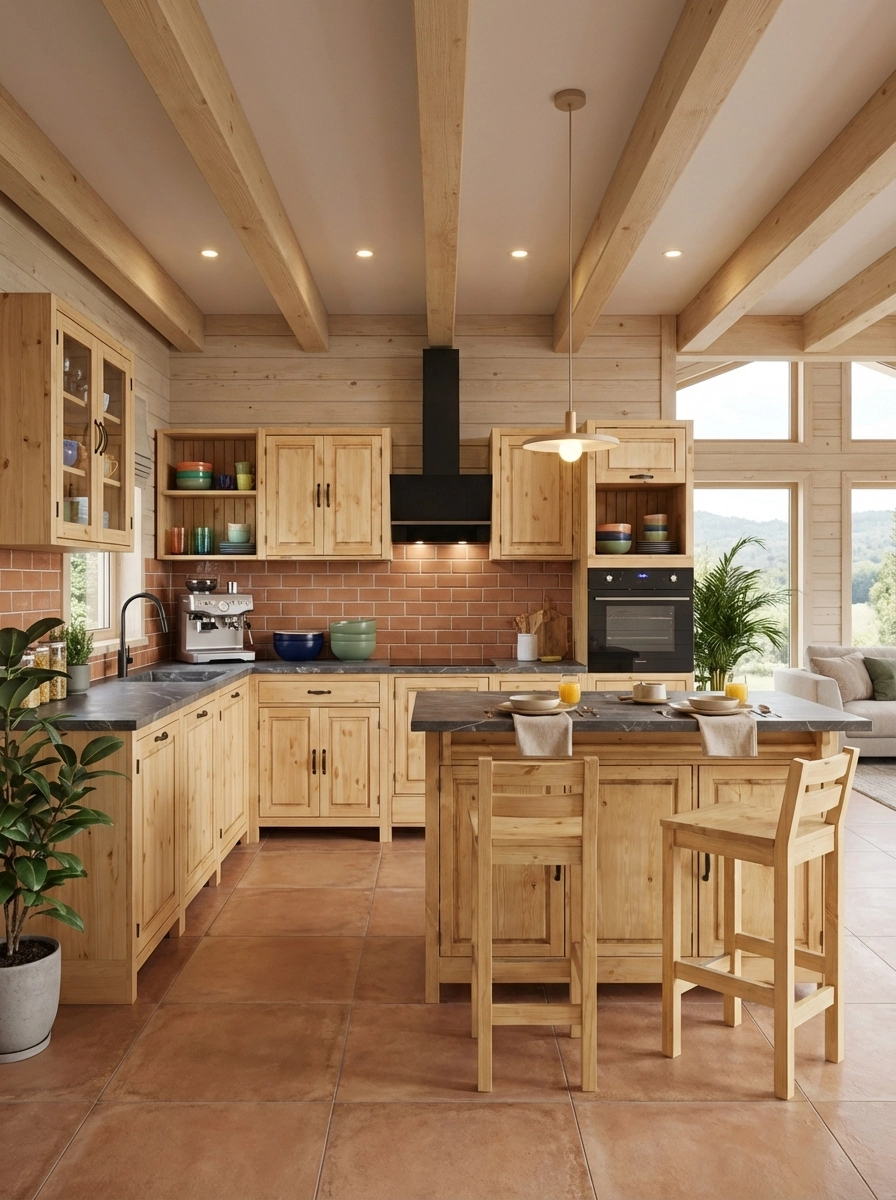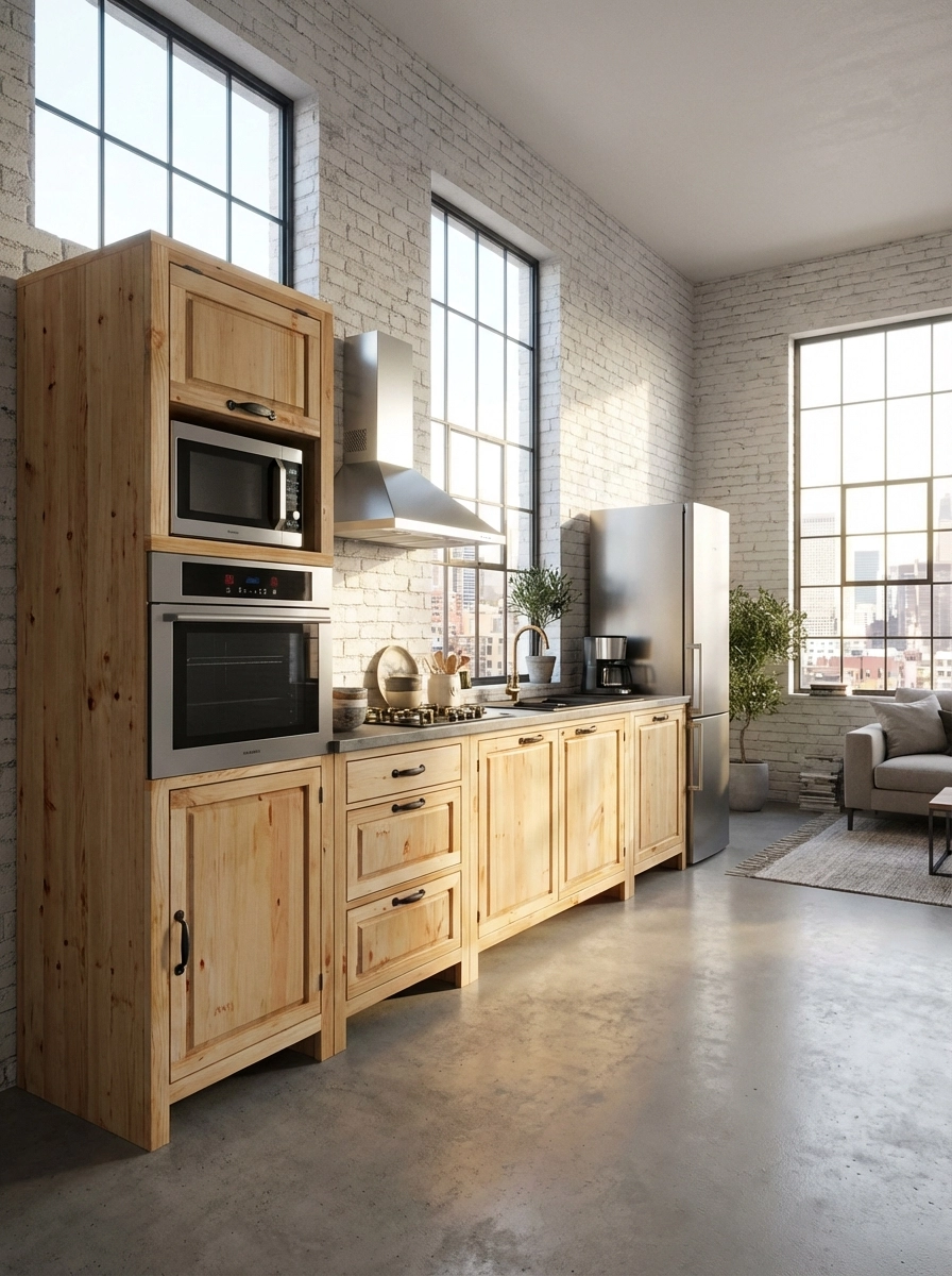 Кухня «Шалёр» – универсальная модульная система из массива сосны, которая поставляется в собранном виде: достаточно распаковать и установить — никаких сложных сборок. Коллекция включает базовые шкаф-столы с распашными дверцами и выдвижными ящиками, угловые модули, а также специализированные тумбы под мойку, варочную панель и духовой шкаф.