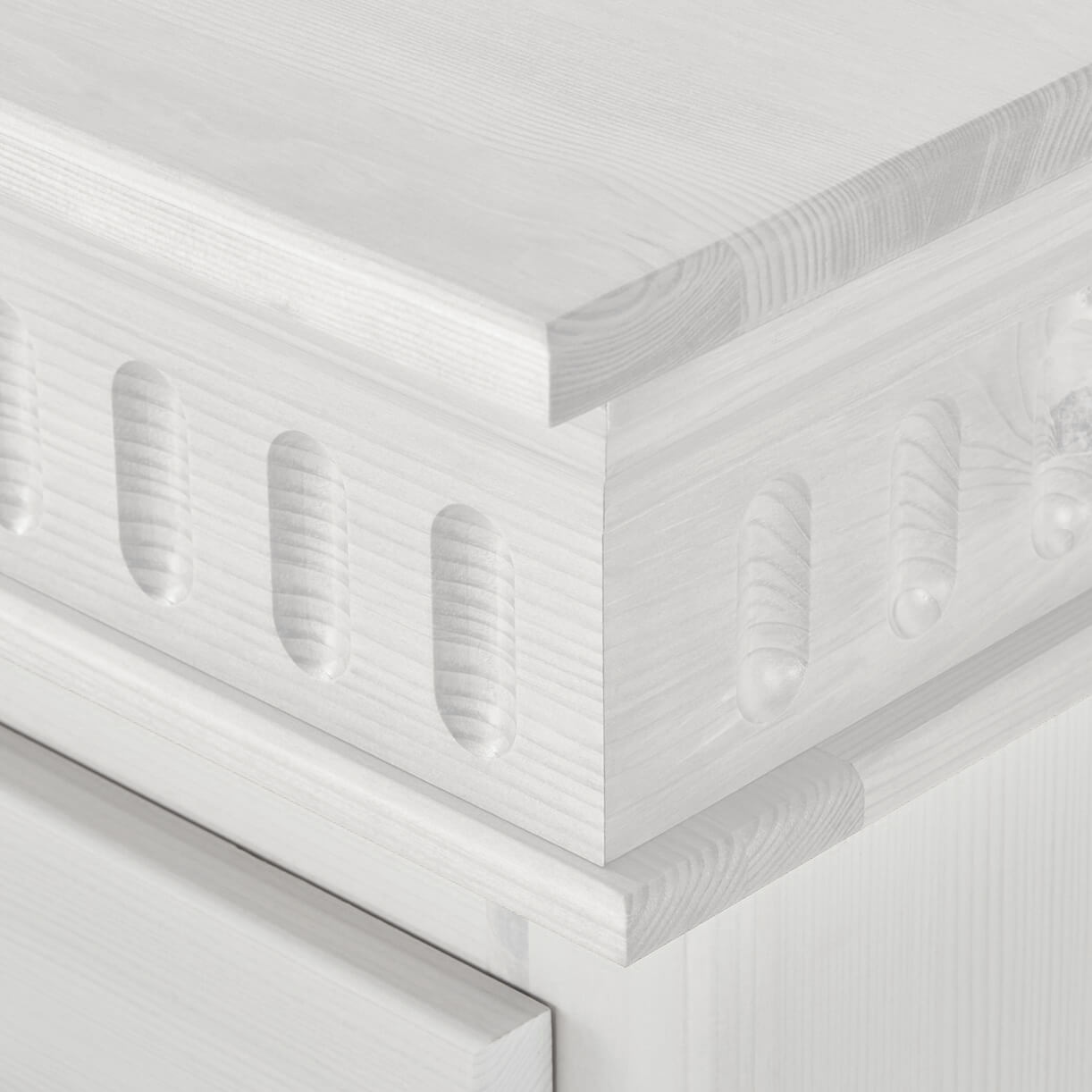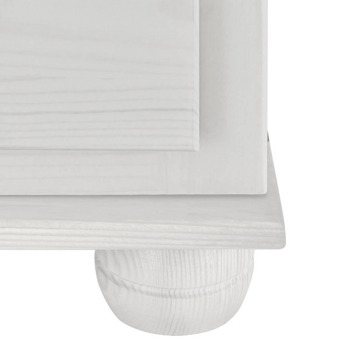 Размеры комода составляют 107 х 95 х 50 см. Он выполнен из массива сосны, а задняя стенка изготовлена из HDF — древесноволокнистой плиты высокой плотности, ламинированной с одной стороны. В комплекте идёт крепкая немецкая фурнитура.