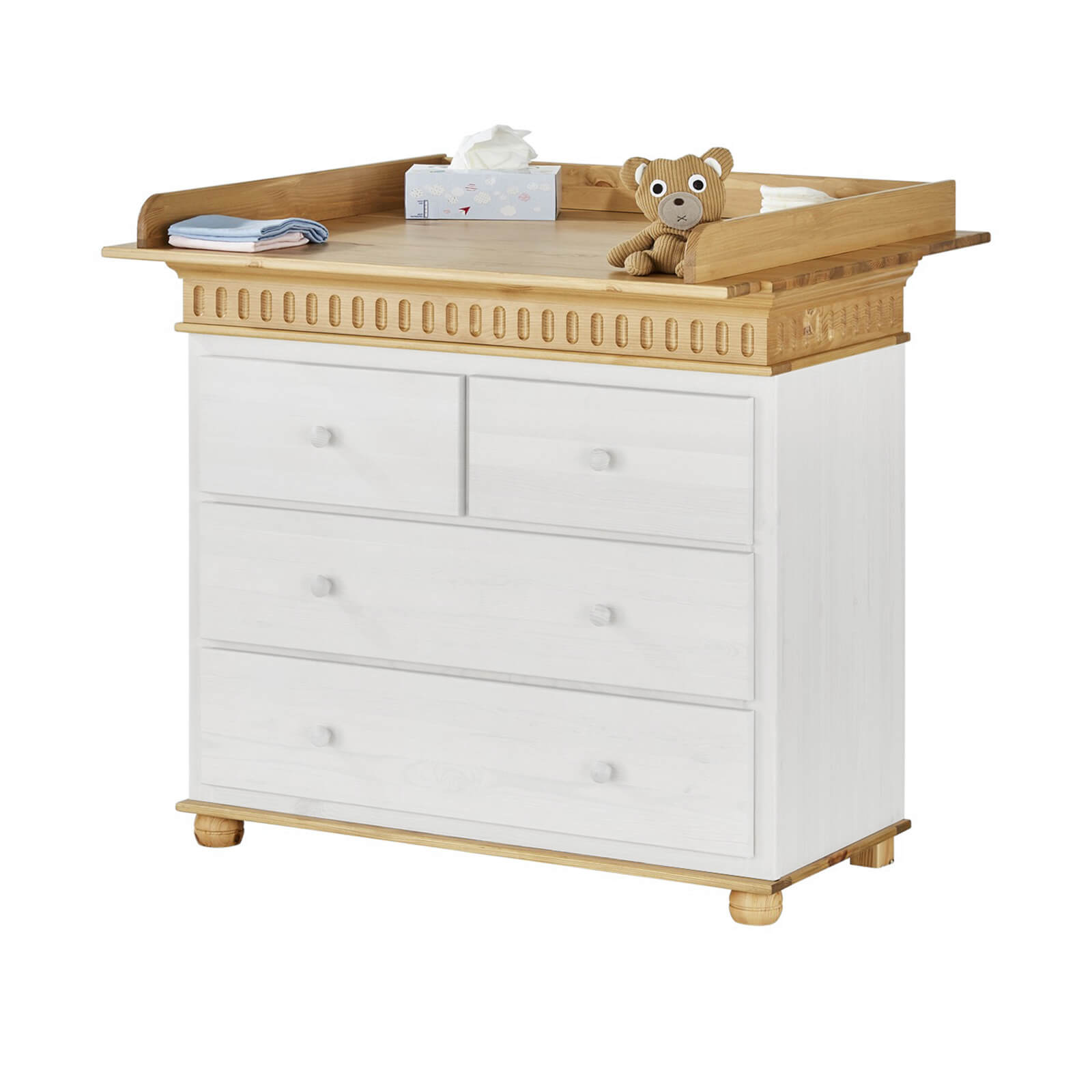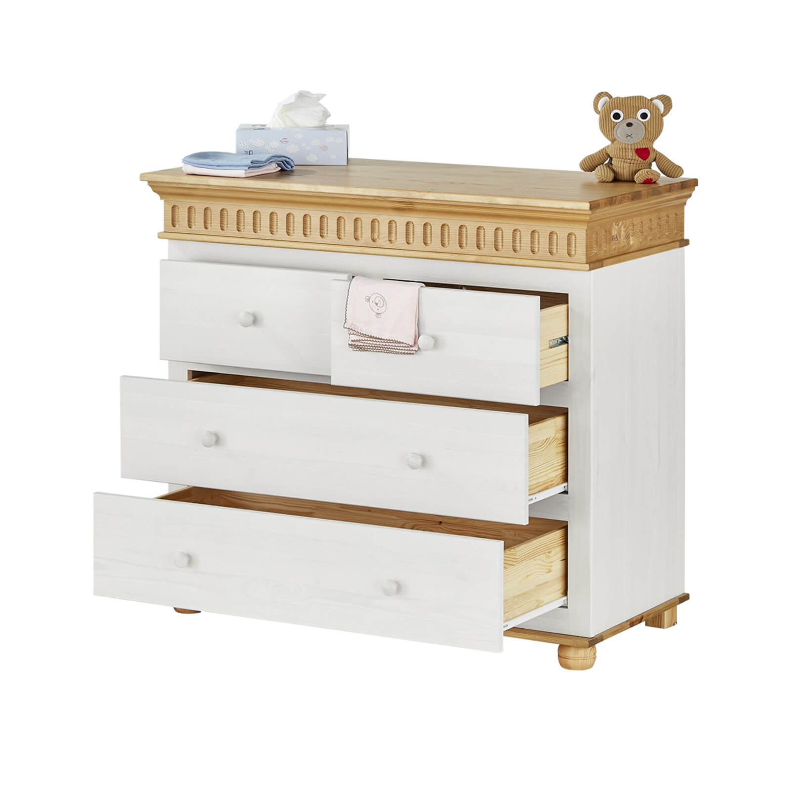 Комод «Хельсинки» — это отличный выбор для молодых родителей, которые хотят создать уютную и функциональную обстановку в комнате своего ребёнка. Комод оснащён четырьмя выдвижными ящиками: два широких и два узких. Это позволяет удобно хранить вещи и поддерживать порядок в детской комнате.