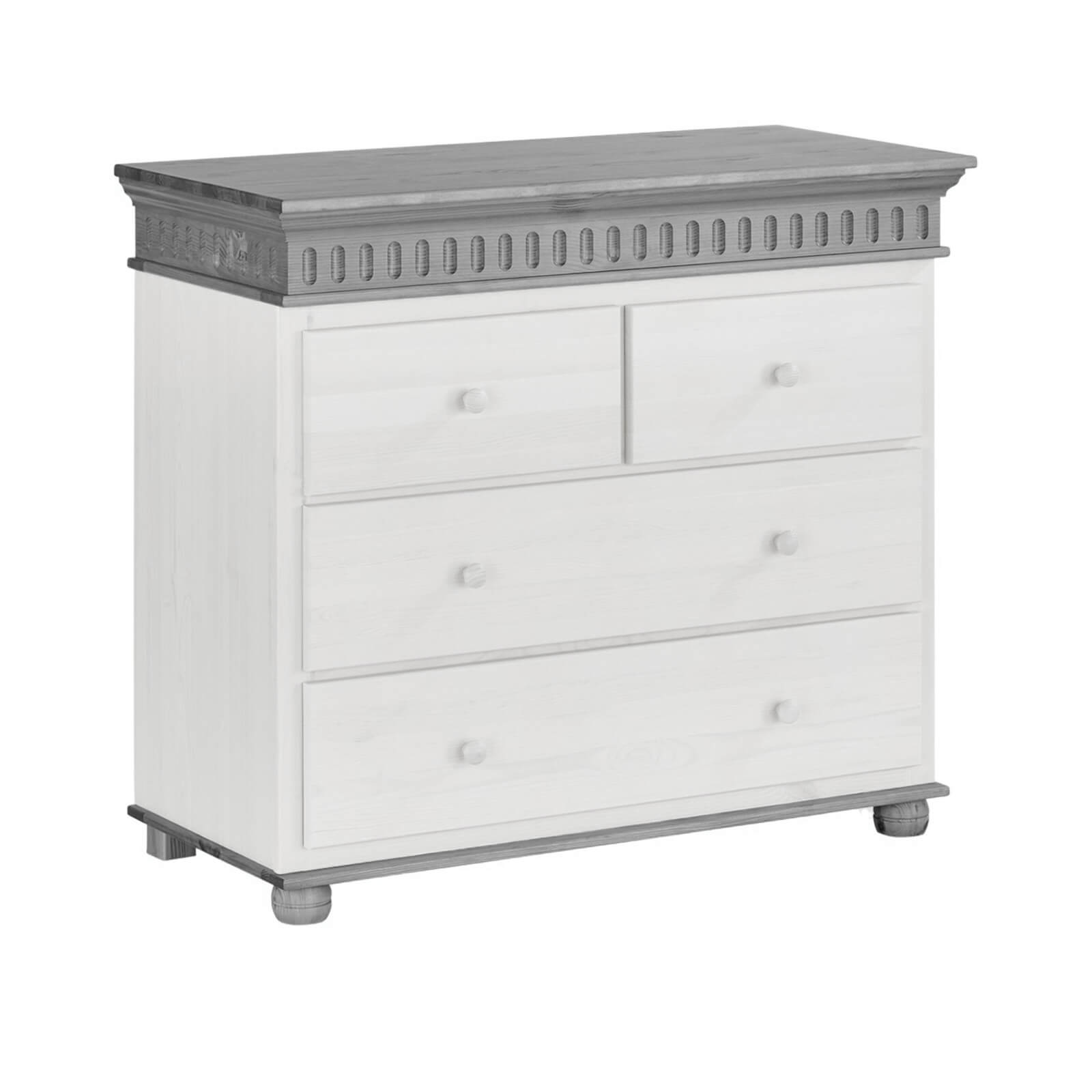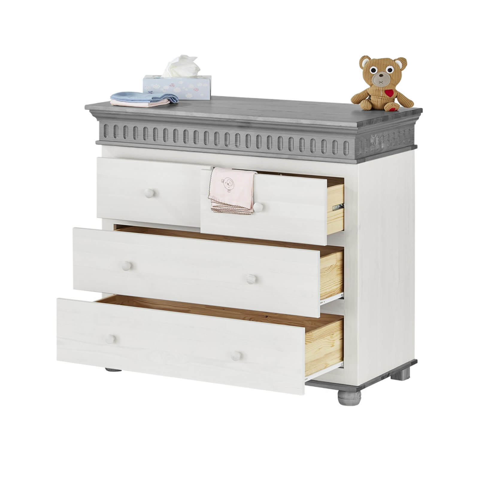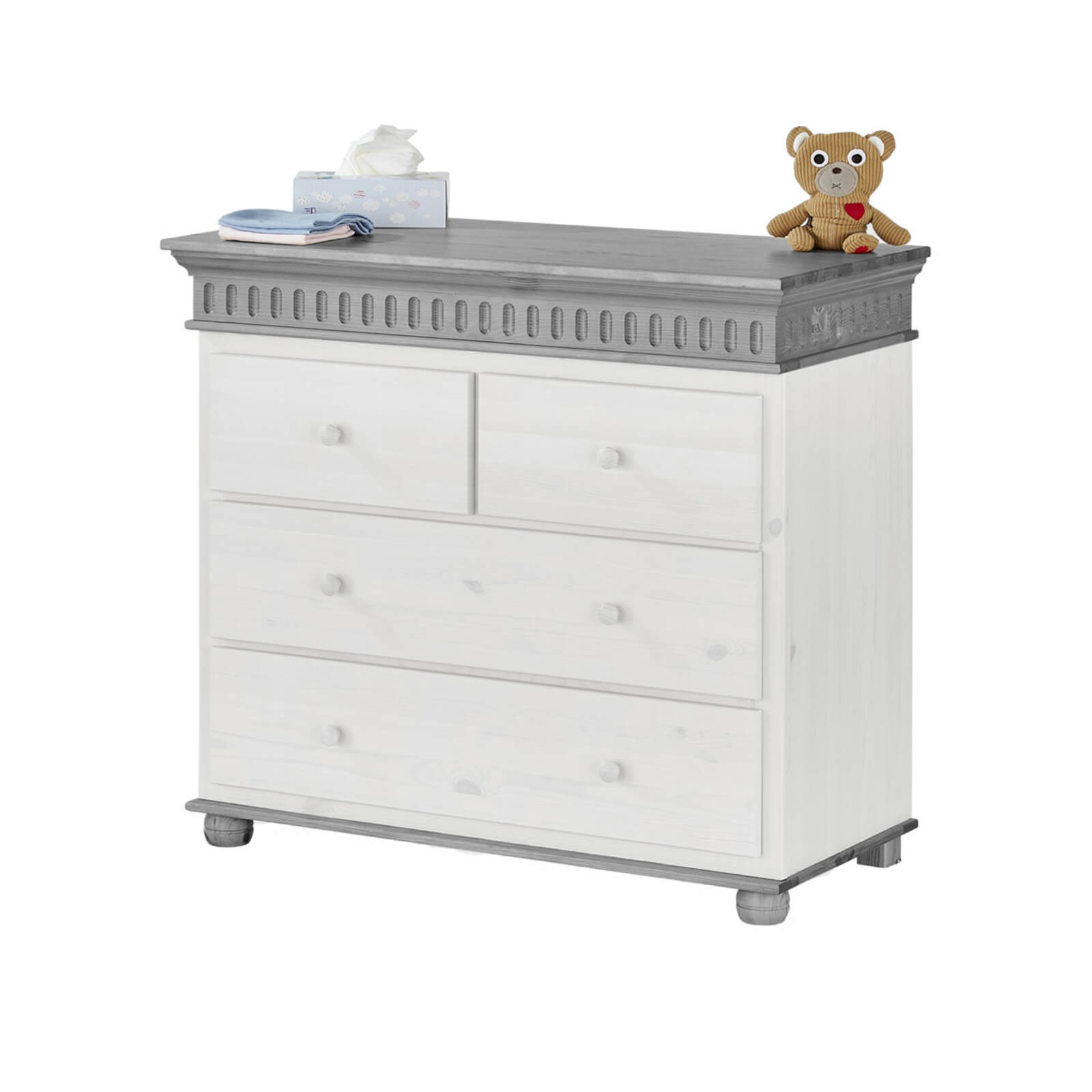 Комод «Хельсинки» — это отличный выбор для молодых родителей, которые хотят создать уютную и функциональную обстановку в комнате своего ребёнка. Комод оснащён четырьмя выдвижными ящиками: два широких и два узких. Это позволяет удобно хранить вещи и поддерживать порядок в детской комнате.