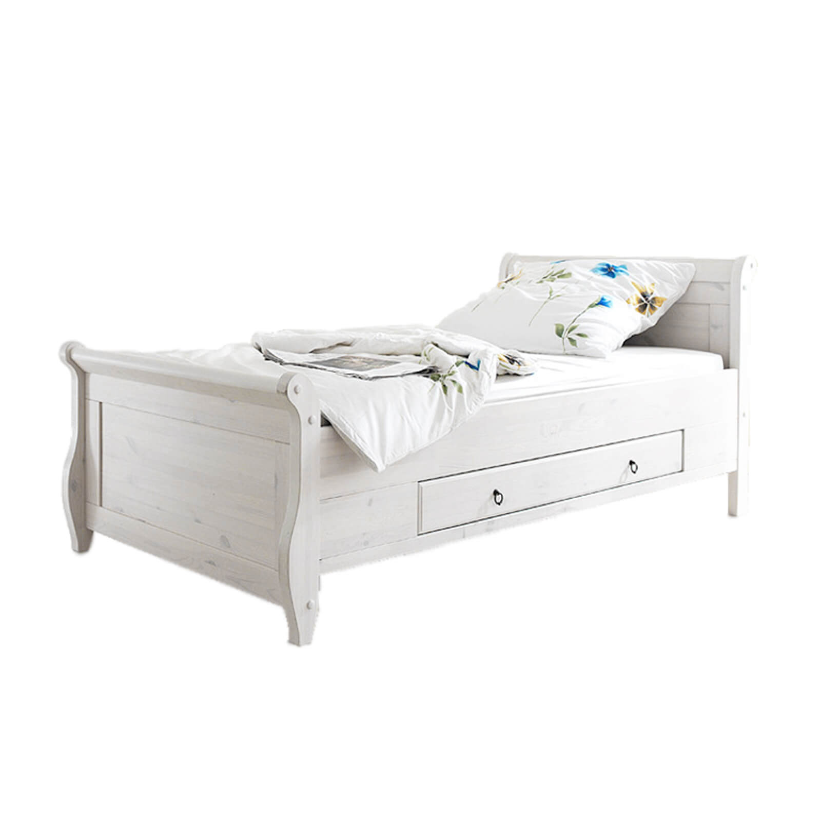 Элегантная кровать "Мальта" с ящиками из массива сосны В небольшом помещении главное в мебели - функциональность Именно этим отличается кровать “Мальта” с ящиками в которых можно хранить постельное белье или другие вещи Выполненная в цветах (антик белый воск колониал и серый) она впишется в любой интерьер Среди ее особенностей: Изготовлена из массива сосны; Только качественная немецкая фурнитура; Проста в сборке; Соответствует европейским стандартам; Экологически чистая Внимание: настил (ортопедическое основание) в комплект не входит! Особенности покрытия Также стоит отметить что покрытие этой кровати представляет собой лакокрасочные материалы на водной основе Они не выделяют вредных веществ способных нанести вред здоровью детей