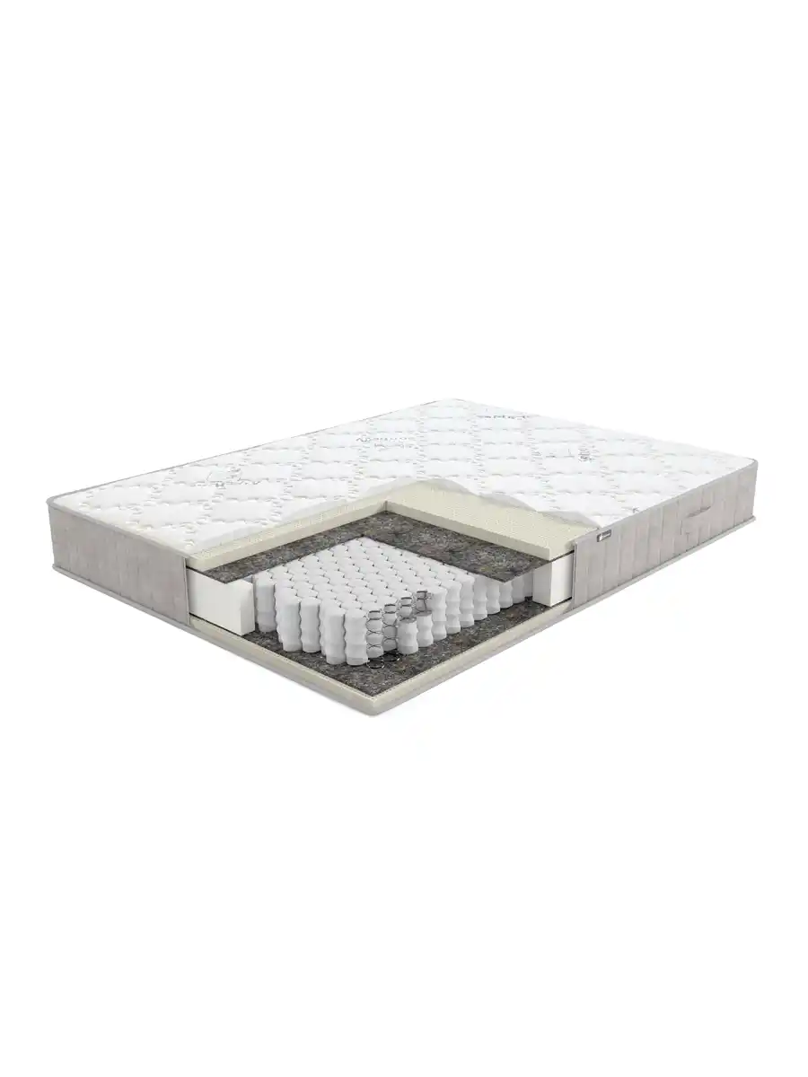 и состоит из системы комфортности, системы усиления периметра из гипоаллергенного пенополиуретана, защитного слоя и мягкого наполнителя. В качестве последнего используется натуральный латекс 30 мм высотой.