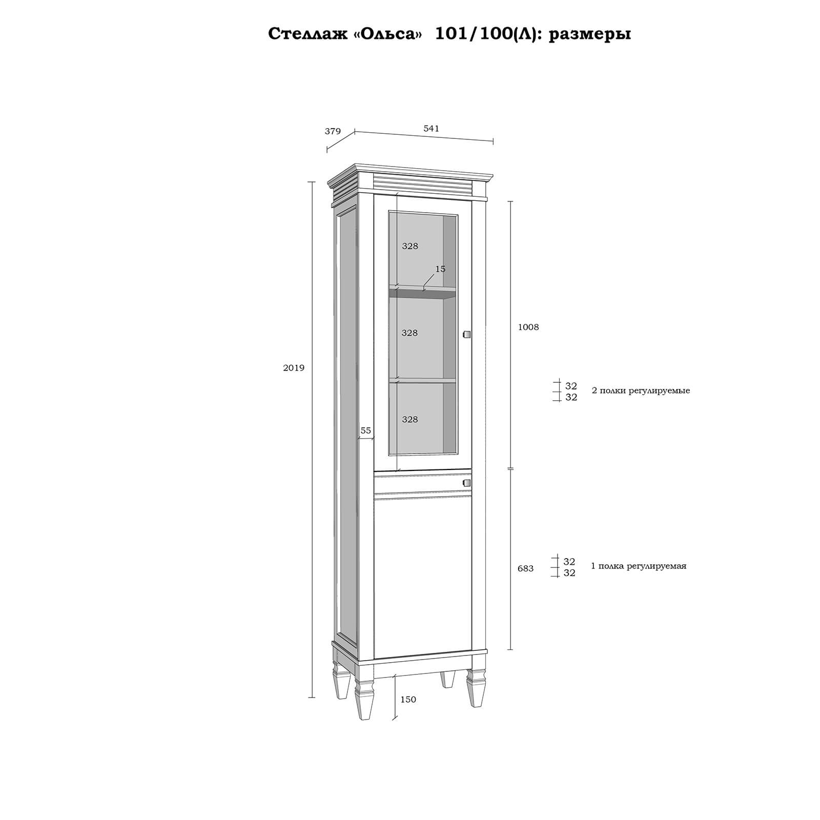 Стеллаж массив сосны «Ольса" 101/100 (П/Л) (серый 7042/антик 24)
