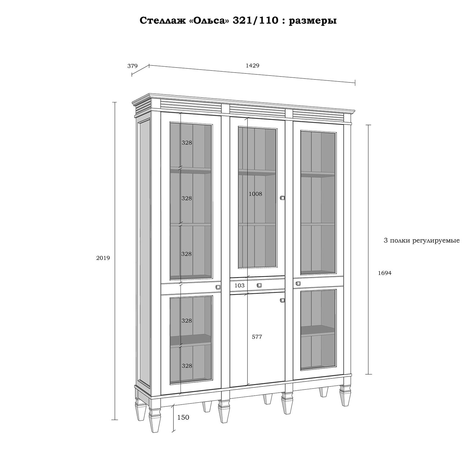 Стеллаж "Ольса" 321/110 (серый 7042/антик 24)