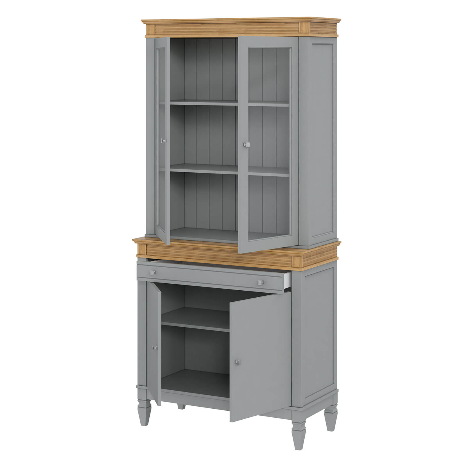 Верхняя часть – это полки за стеклянной витриной, где вы можете хранить любимые сервизы.