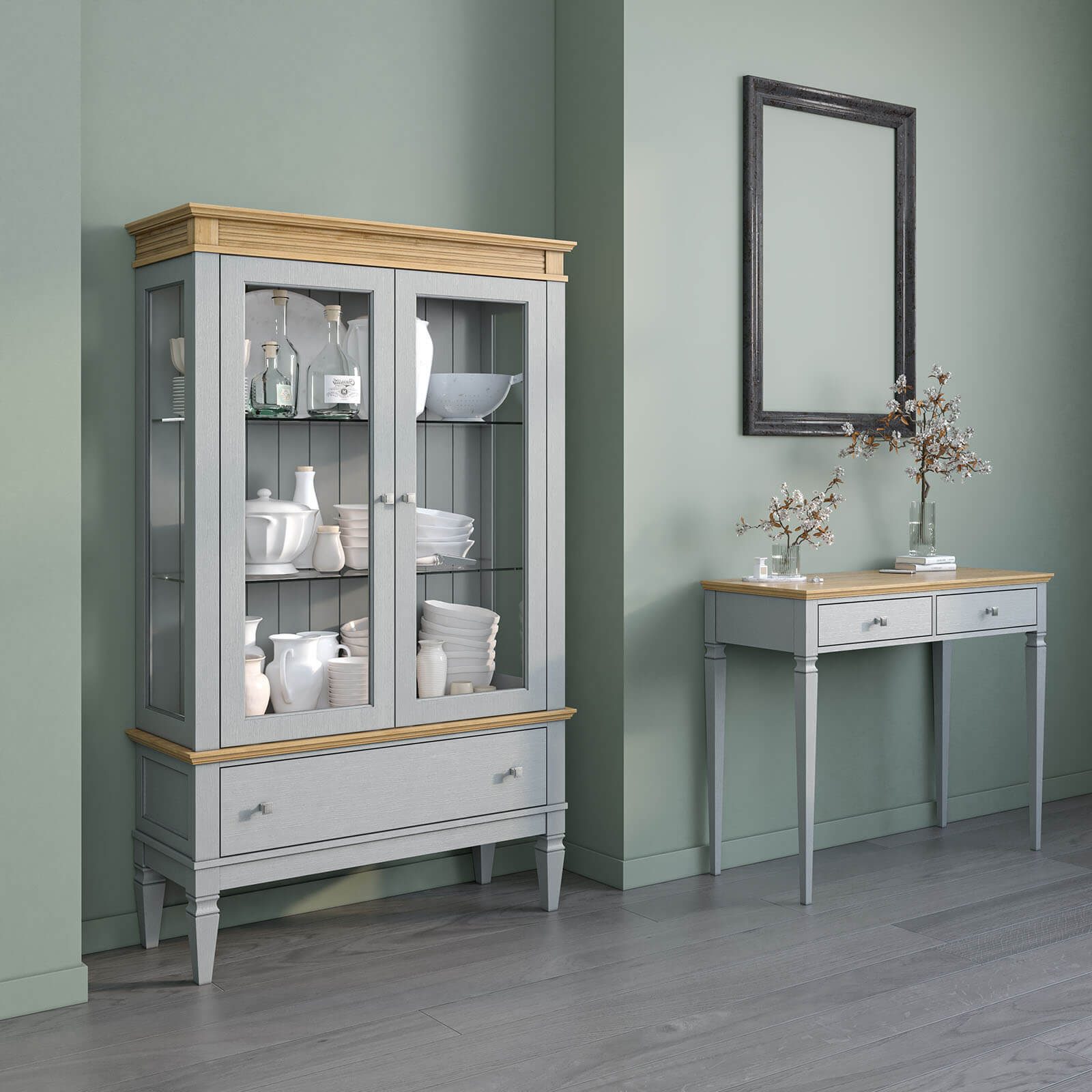Модель доступна в цвете «белый лак», «белый лак/антик 24», «серый 7042/антик 24».