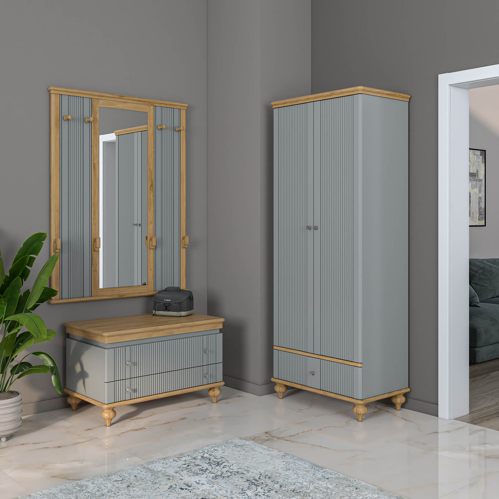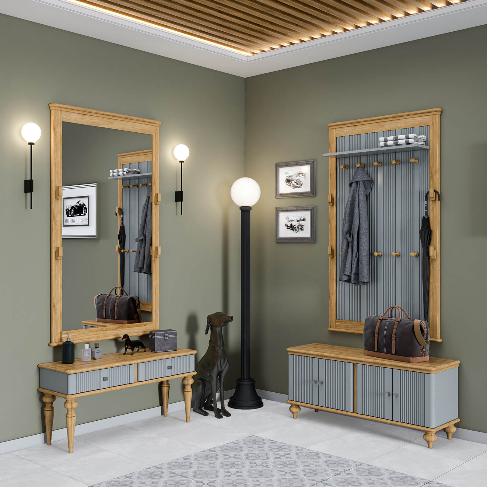 Мебель для прихожей «Рандеву» отличается красивыми фрезерованными фасадами, оригинальными точеными ножками и приятными тонировками. В коллекцию входят обувные тумбы, настенные вешалки, зеркала, подставки для зонтов, навесные полки.