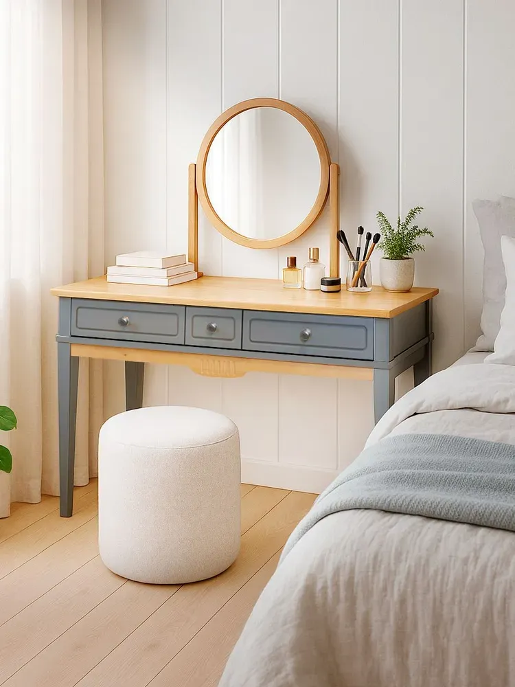 Туалетный столик «Пенни» с 3 ящиками изготовлен из натурального дерева. Это совместный продукт белорусской фабрики ММЦ, немецких дизайнеров и российской компании «ДМС-маркет» (Санкт-Петербург). Столик в скандинавском стиле не занимает много места, будет уместен не только в спальне, но и в гостиной или в рабочем кабинете.