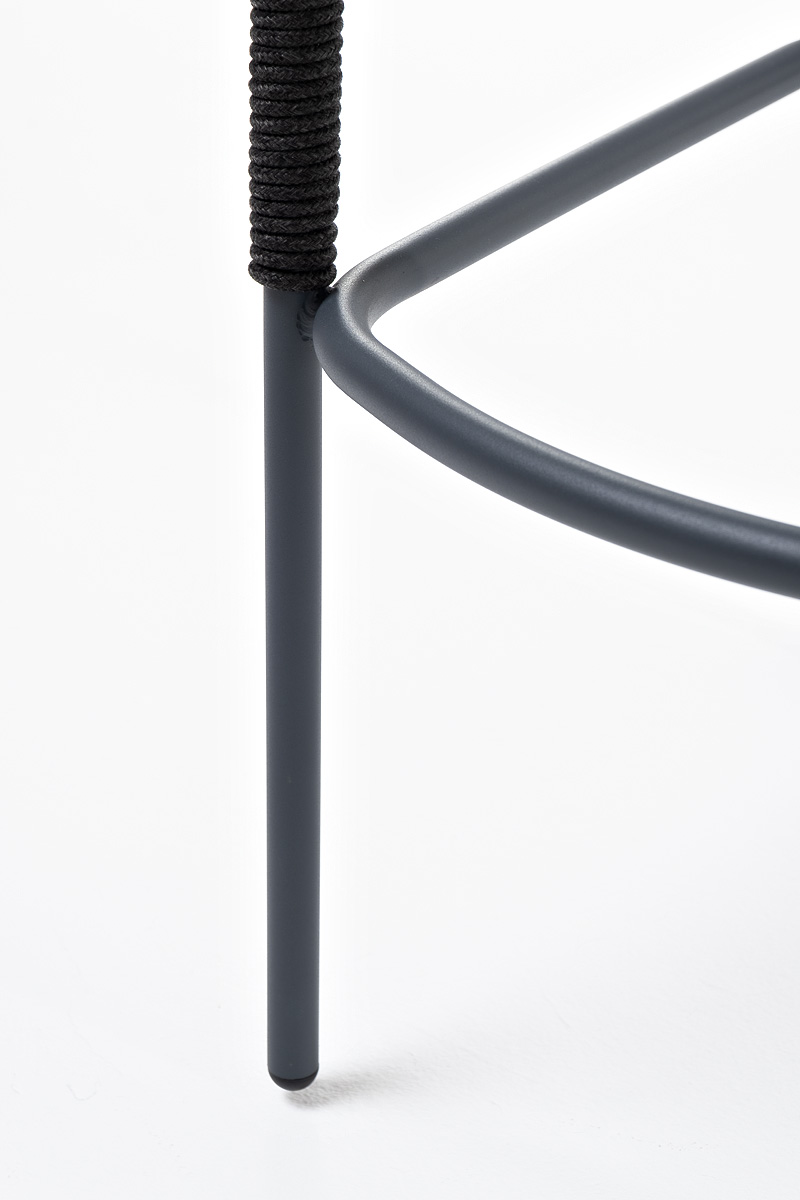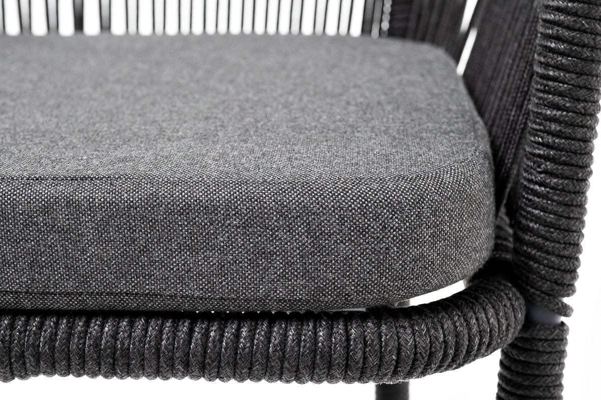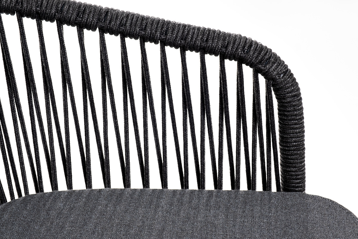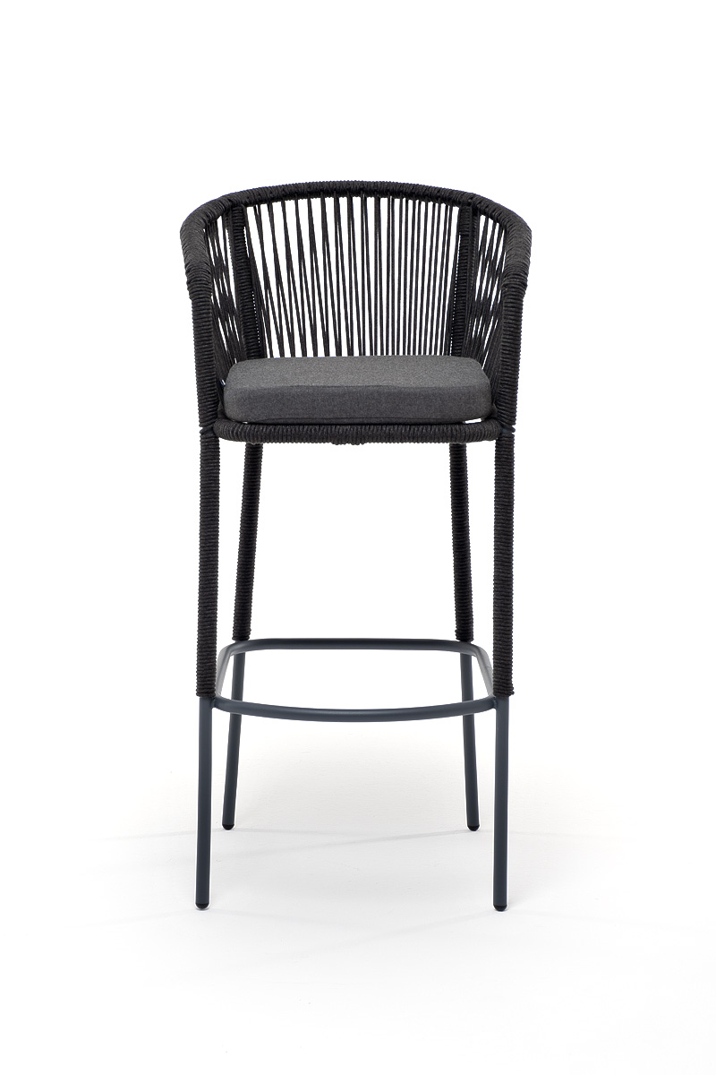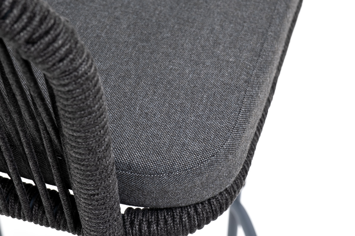 "Марсель" стул барный плетеный из роупа, каркас из стали темно-серый (RAL7024) муар, роуп темно-серый круглый, ткань темно-серая 027
