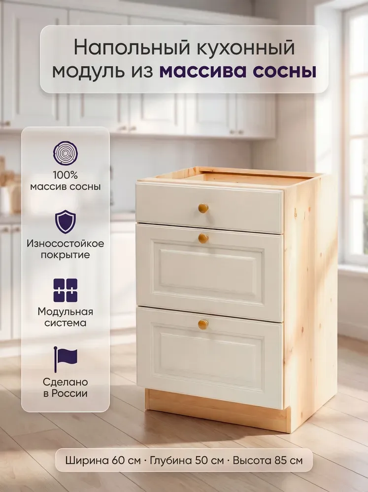 Ищете стильные и функциональные кухонные тумбы для загородного дома или квартиры? Представляем вам тумбу с 3 ящиками «Весури», которая прекрасно впишется в кухонный интерьер.