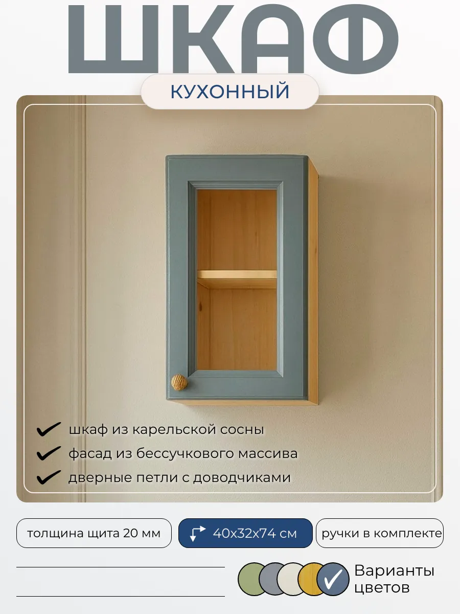 Настенный однодверный кухонный шкаф «Весури» из массива карельской сосны.